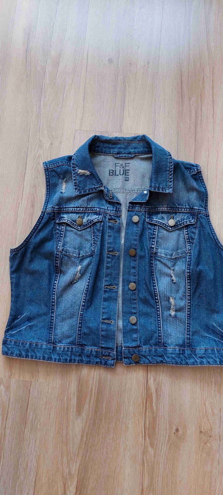 Pekná, nosená, nepoškodená riflová vesta, F&F , dl. 50 cm, š. 52 cm .... cena + pošta