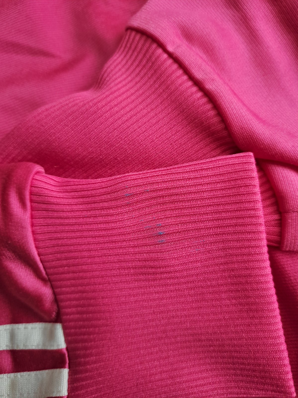 Predam syto ruzovu mikinu adidas je nádherná len na jednom rukávku na manžete fliačik viď foto asi len obtreté niekde neskúšala som oprať /nie je to moc vidieť/inak je nádherná farba vel.38 cena zohĺadnená 15 e /pc bola vysoka/