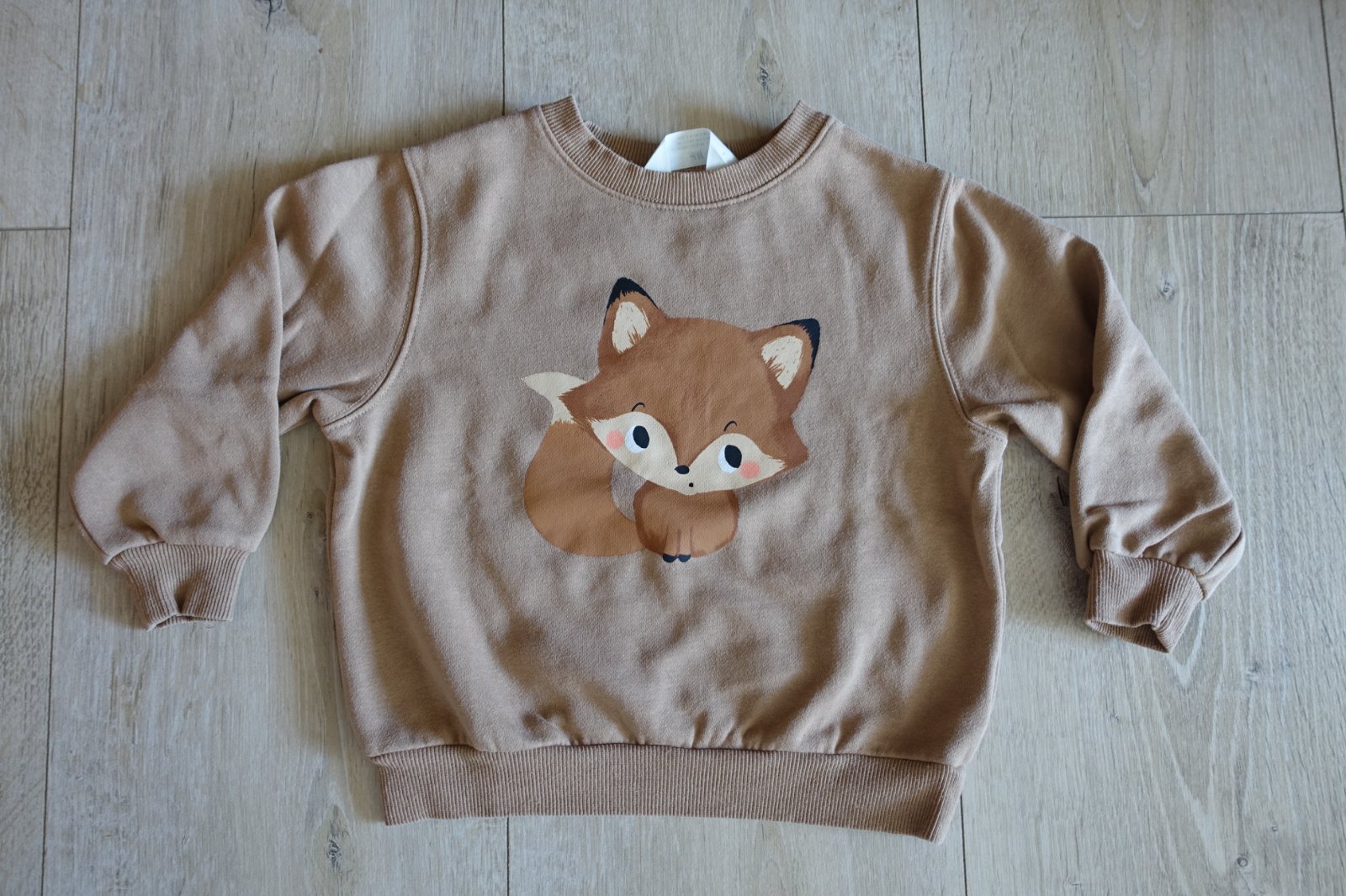 Predám mikinku s líškou, vhodnú už len pre nenáročnú mamičku. Bola synčekova obľúbená, žiaľ už vidno na nej chĺpoček z prania, ale nie je žmolkavá. Je mäkučká, podteplená a je veľmi príjemná na nosenie. Celková dĺžka 40 cm. (V08)