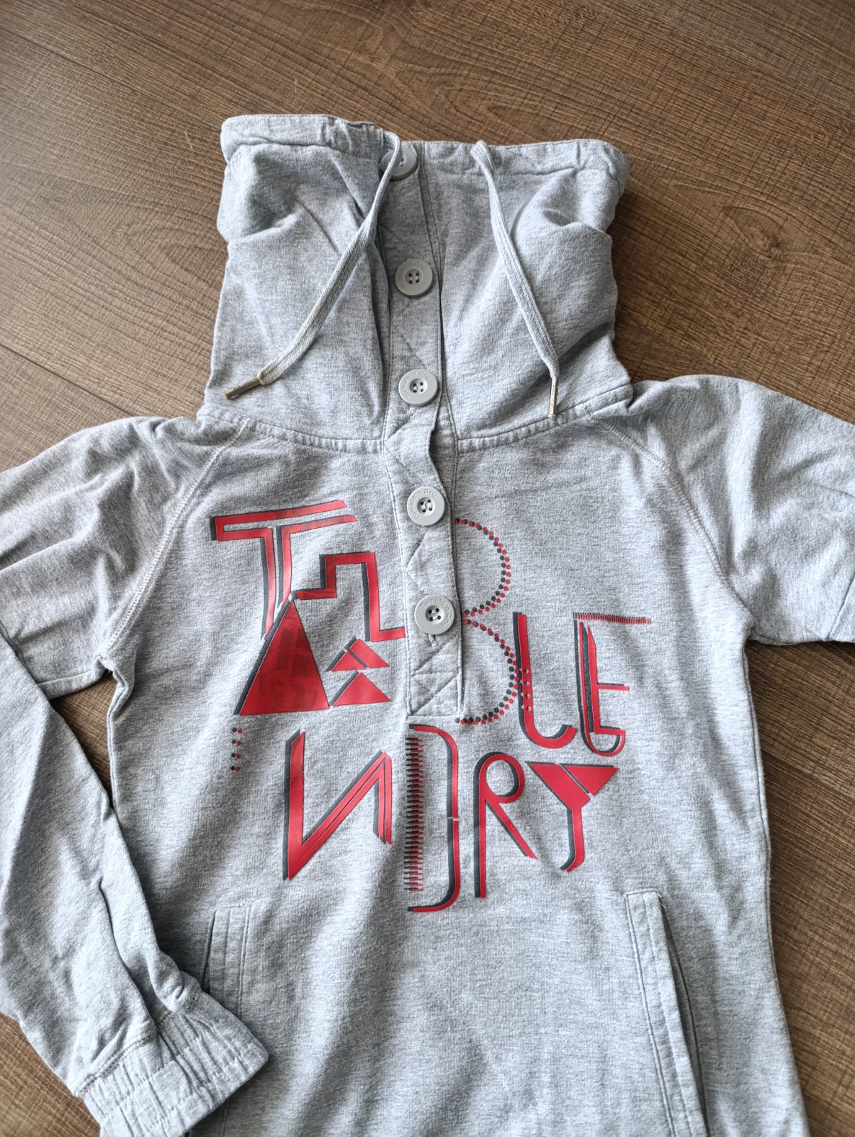 Nosena, bez poskodenia, vidno nosenie troska, skor na cislach na mikinke .