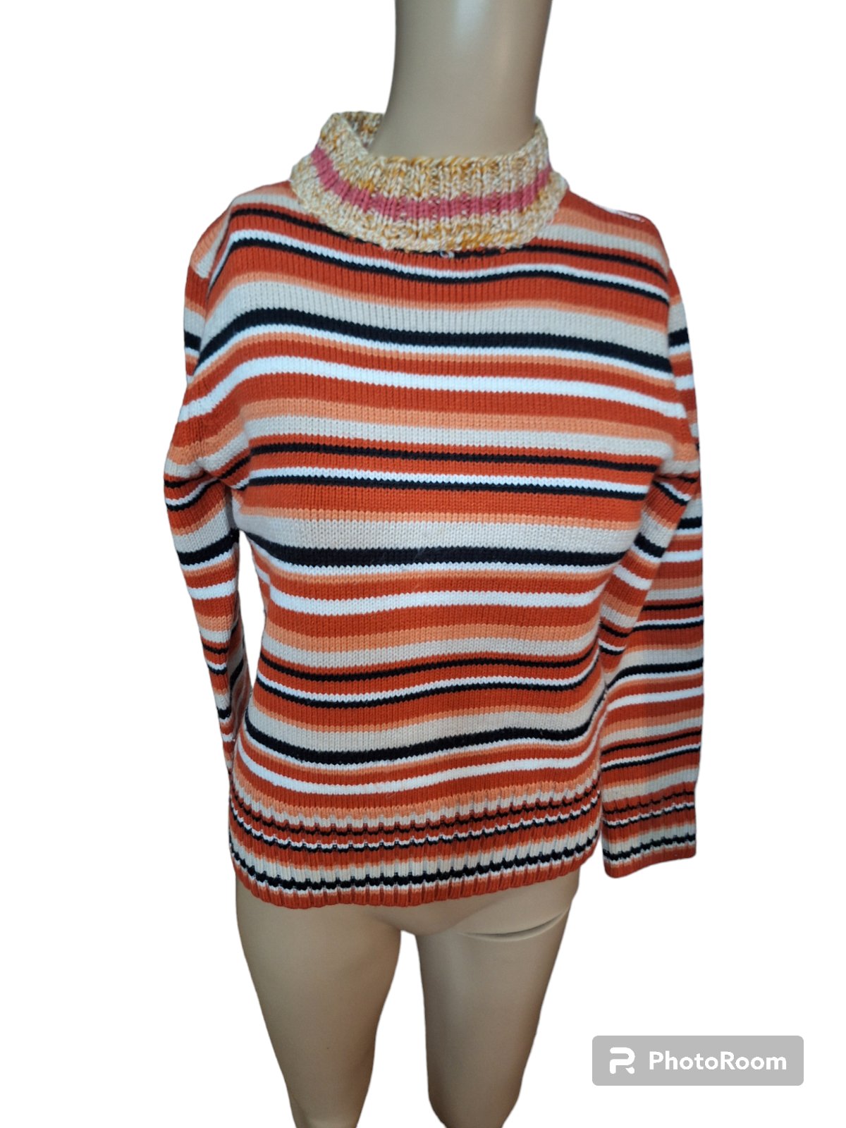 Dámsky pásikavý pulóvrík. Dĺžka je 55cm,obvod hrudníka je 90cma obvod pása je 86cm. Dĺžka rukáva od krku je 65cm. kód 184A