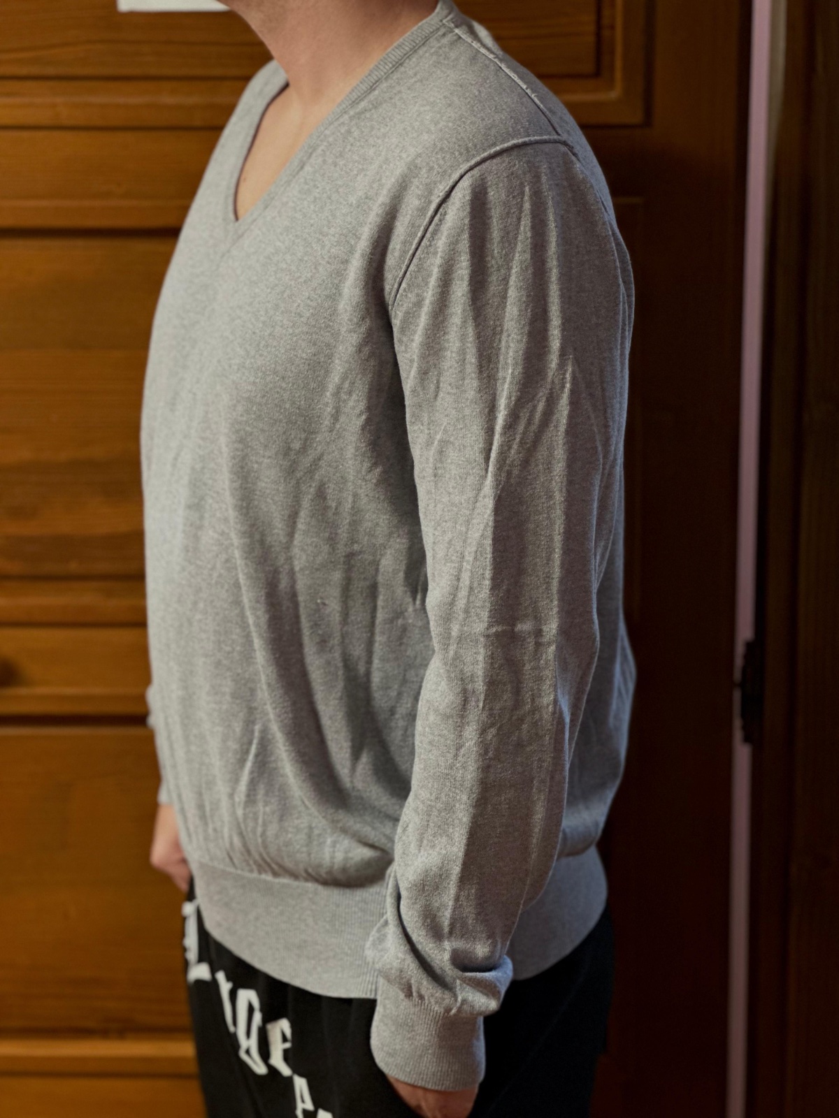 Elegantný sivý sveter od značky Banana Republic, veľkosť XL. Vyrobený z kvalitného a veľmi príjemného materiálu – 90 % bavlna a 10 % kašmír, vďaka čomu je na nosenie veľmi pohodlný a mäkký. V výstrih dodáva svetru elegantný vzhľad a hodí sa na každodenné nosenie aj formálnejšie príležitosti.