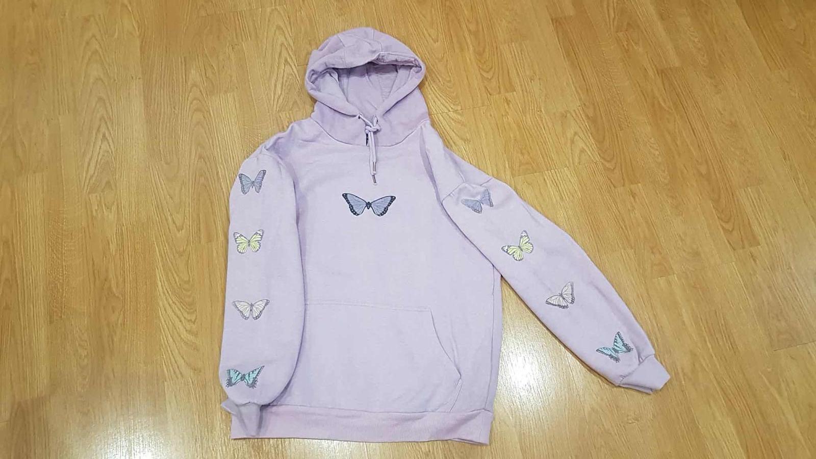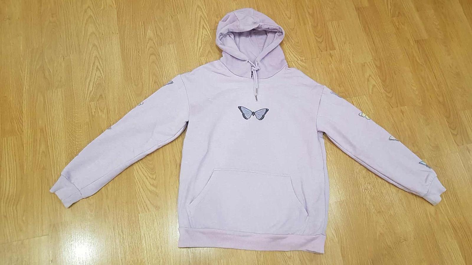 veľmi dobrý stav, bez poškodení, pidi žmolky sa nájdu. Šírka popod paže je 53 x 2 cm, 70 % polyester, 30 % bavlna. Farba je do fialkova, má vrecká, zn. Cropp.