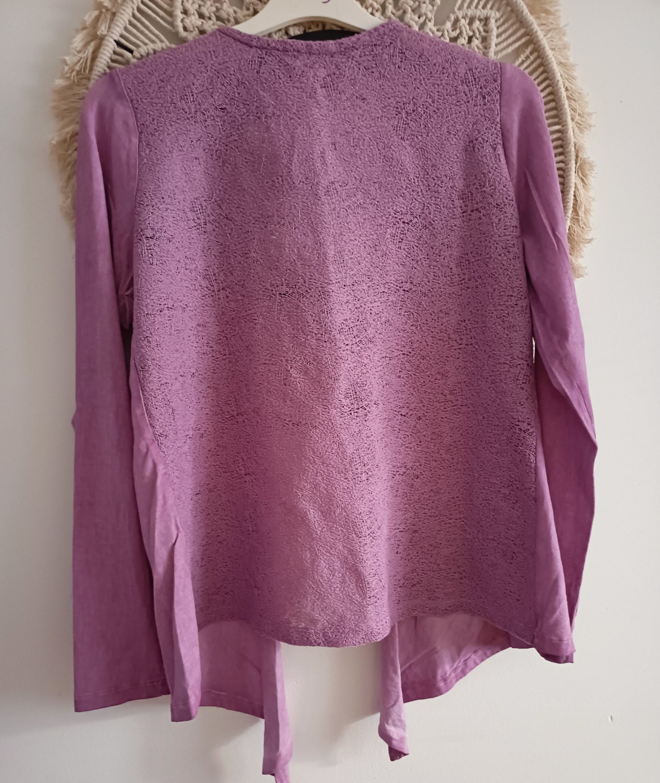 Zaujímavý top, je tenučký a priesvitný Zloženie 50%vlna, 50% akryl Veľkosť M, dĺžka 69cm, cez prsia 2x49cm Jedna minidieročka