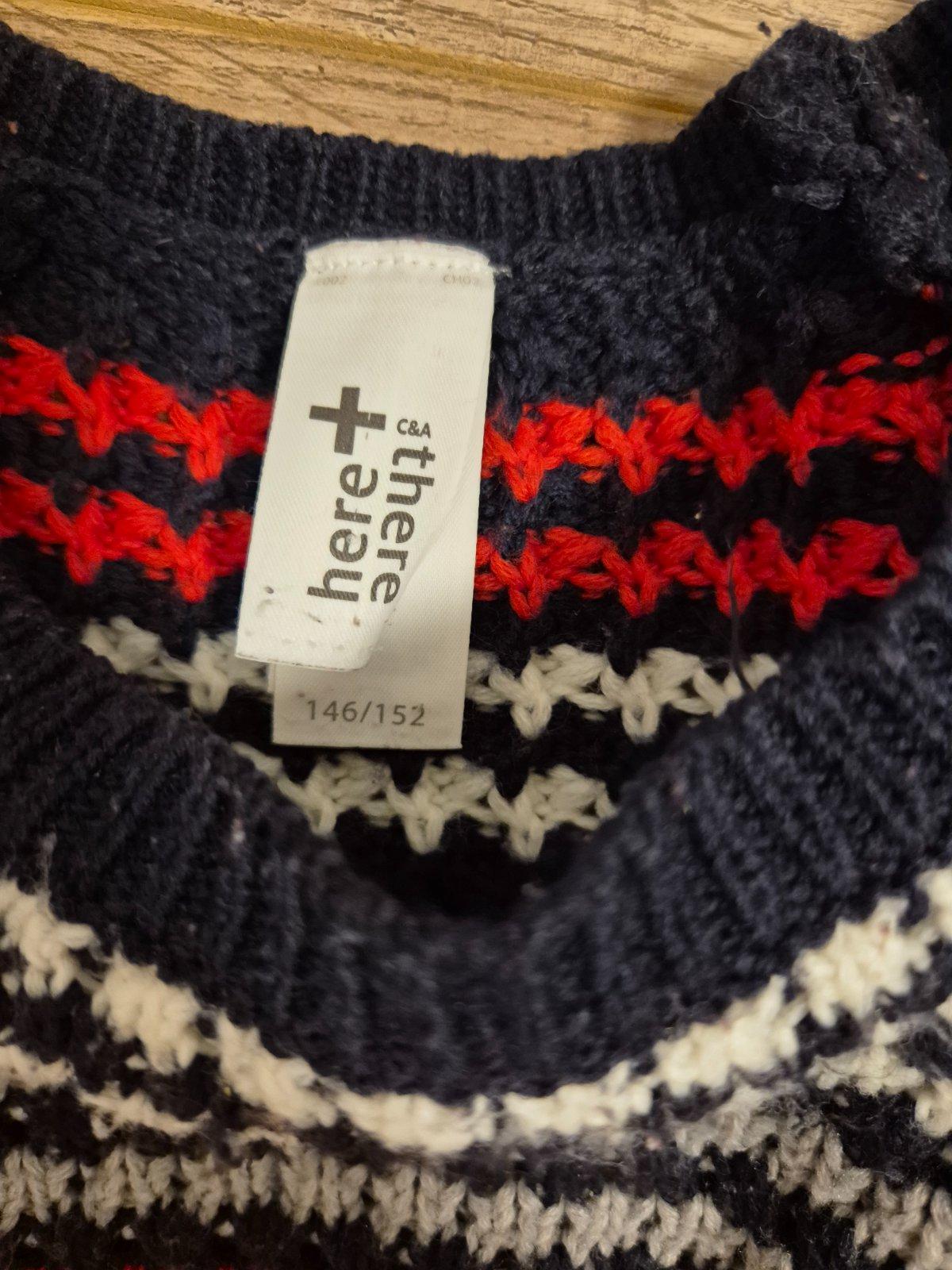 Teplý a vlnený ale s podielom bavlny čiže nie je pichľavý. Veľkosť 146/152.