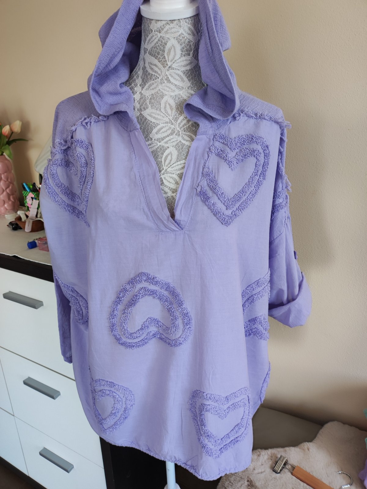Stav: top stav, ako nová, 3x oblečená, bez poškodenia. Zn.: KURA fialové hoodie veľkosť: uni riaďte sa miermi v cm - viď. foto Pôvodná cena 129,- Zaujímavosť - vzadu sa dajú stiahnuť, zvnút. strany...