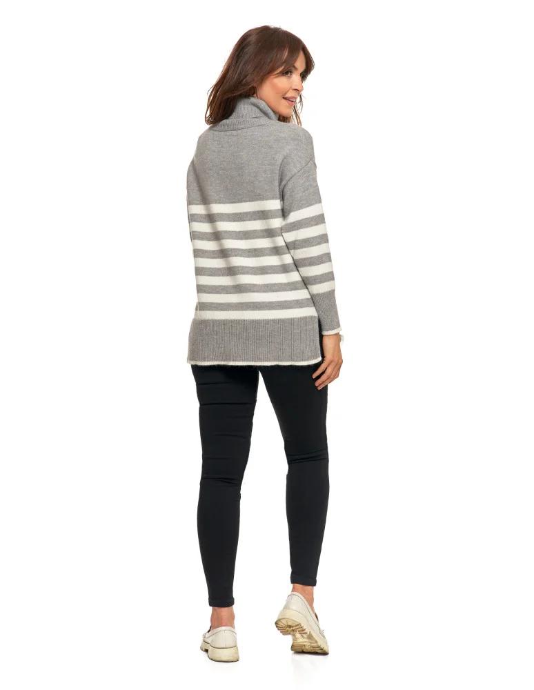 Dámsky pásikavý rolák Moraj sivý pohodlný sveter