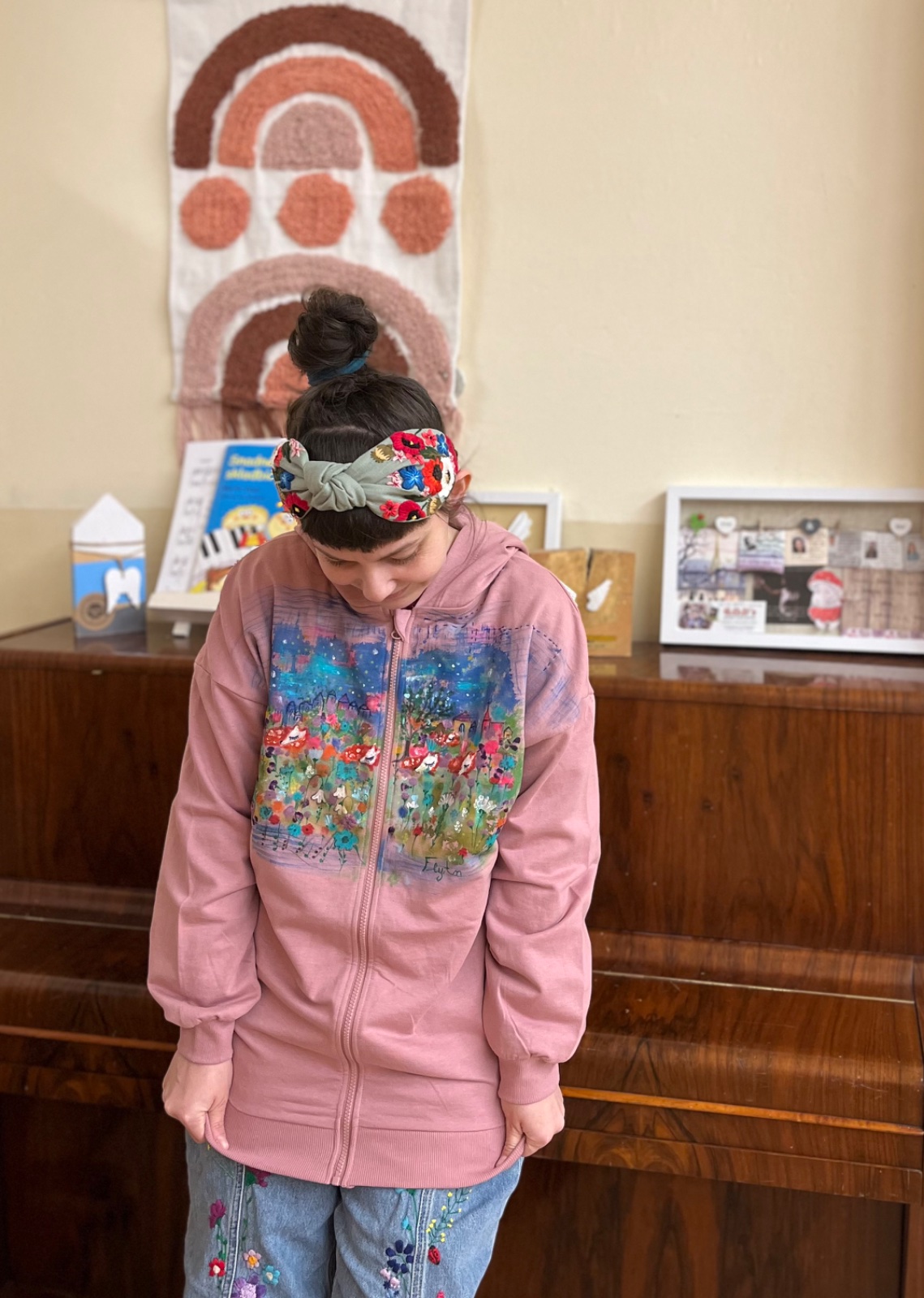 Mikina 170 S M Pre dámy Pre dievčatá So zapínaním S kapucňou Handmade Bledoružová Šialene mnohofarebné