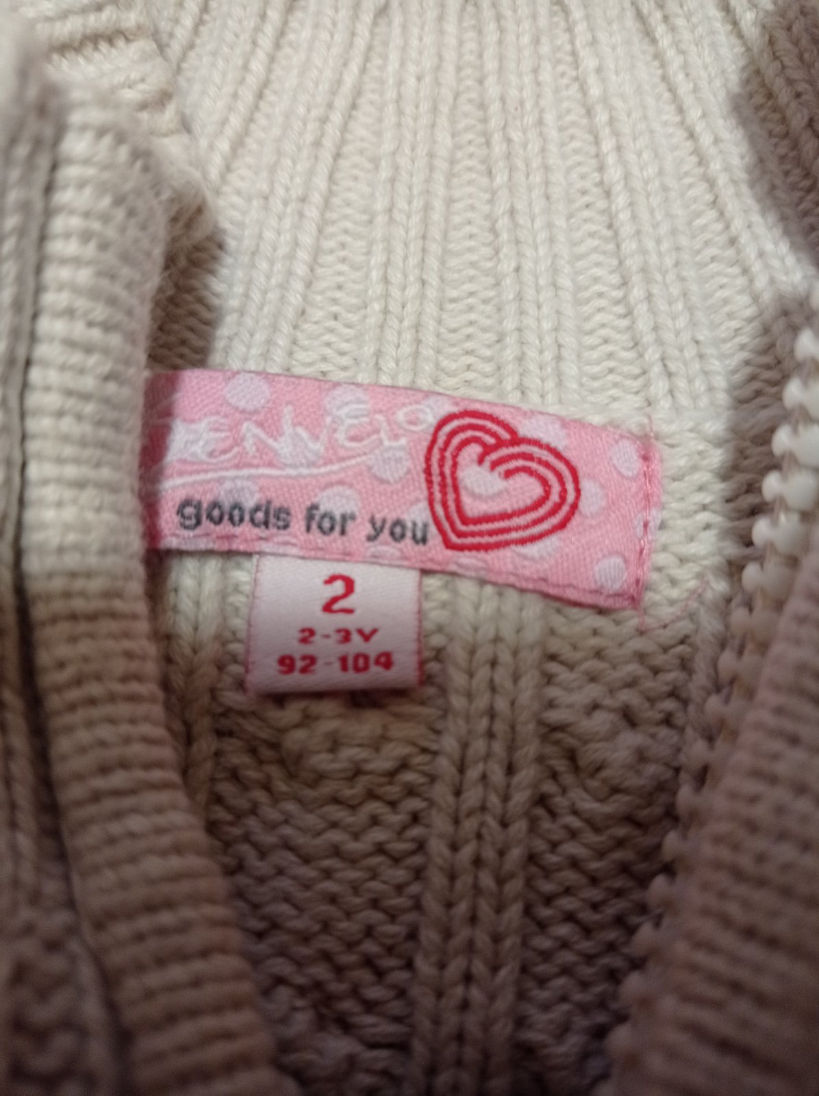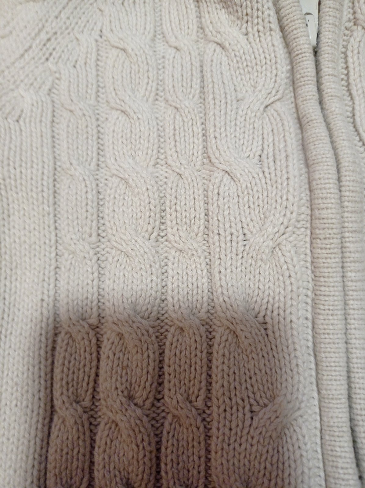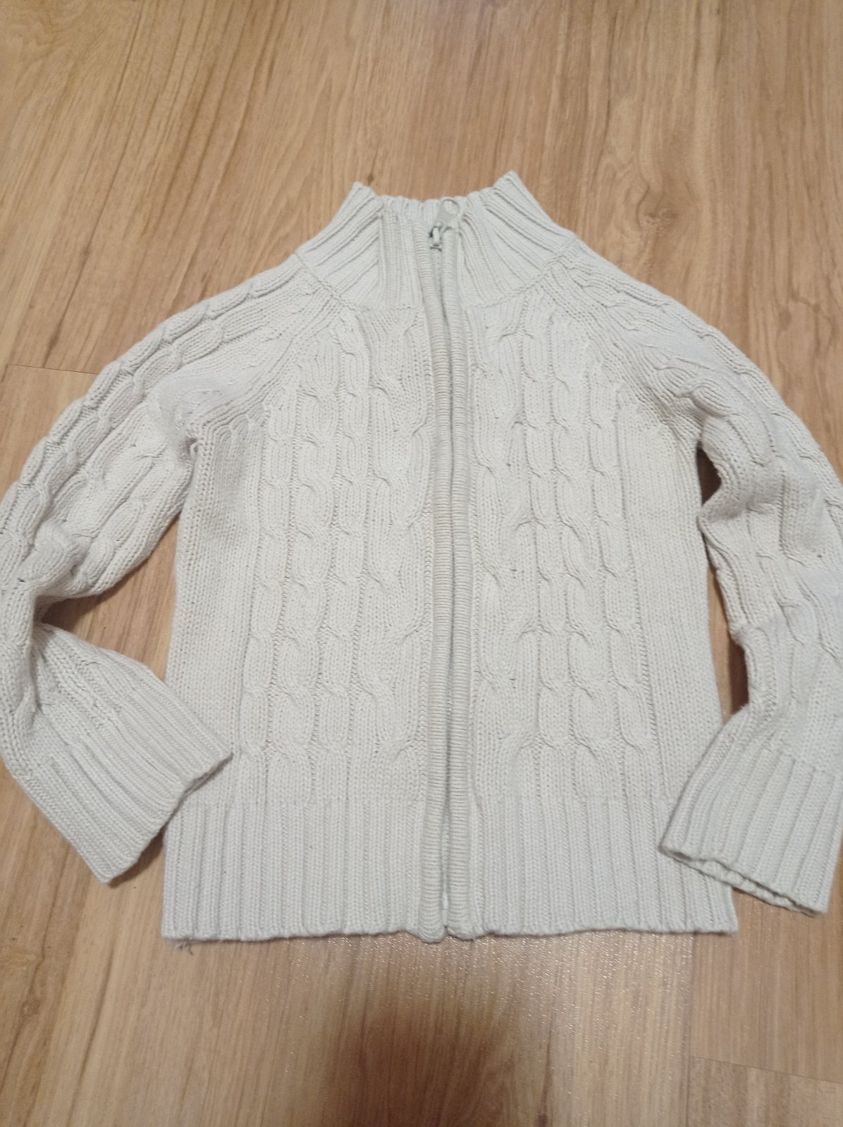 Sveter kremovej farby, zmolky takmer nema. Velmi dobry noseny stav. Rukav od krku:39 cm. Dlzka:37,5. Sirka 26,5 cm.