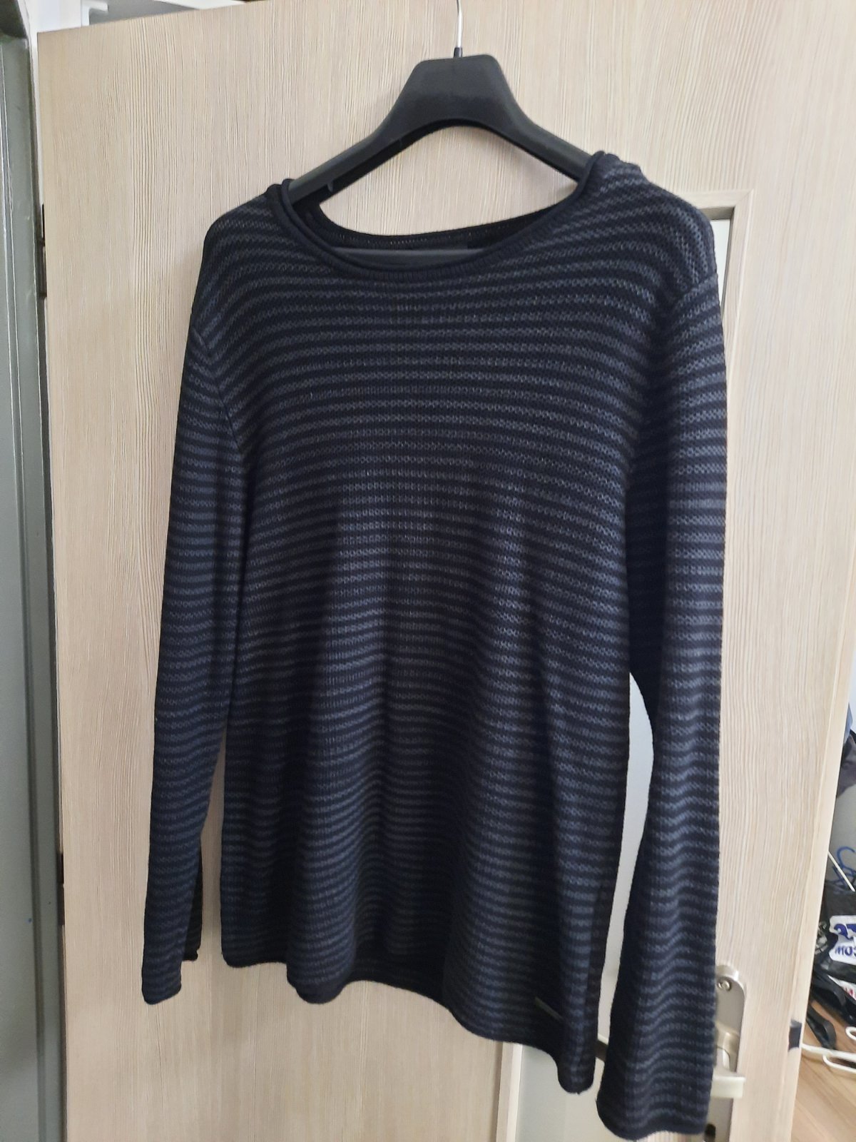 nevymieňam!!farba taká tmavo šedá,až do čierna,s malým logom na prsiach-golf-pár krát oblečený,bez poškodení-veľkosť XL,ale premerajte-dĺžka 63cm,šírka 2 x 54cm,rukáv 55cm,je elastický,tenší.kuk aj...