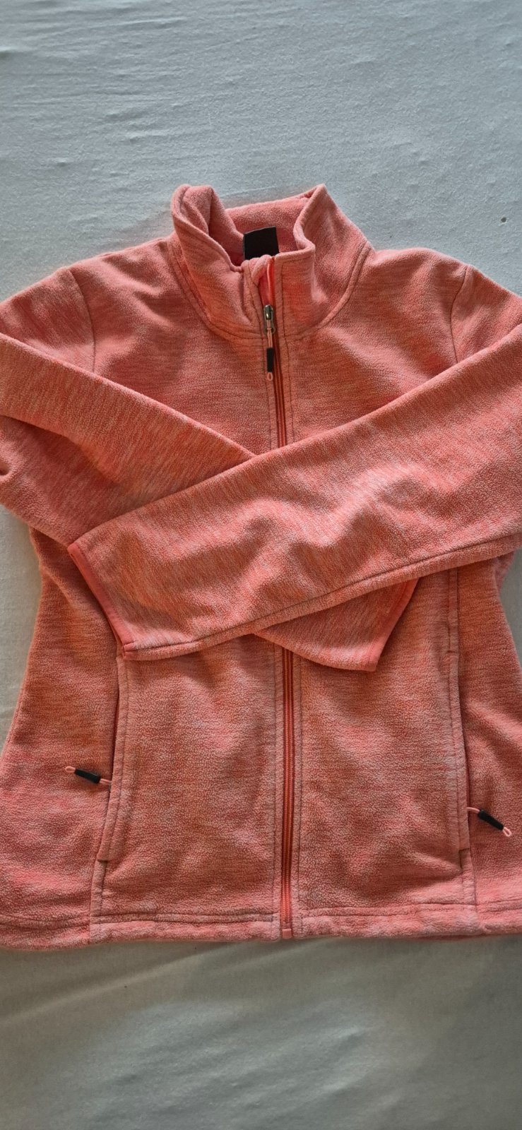 Teplá mikina,udana vel.L,ale zodpoveda vel.M, vpredu s vreckami,na jednom trojuholníku pri vrecku je osuchana ta koženka,/viď foto/,farba taka tmavo lososová...