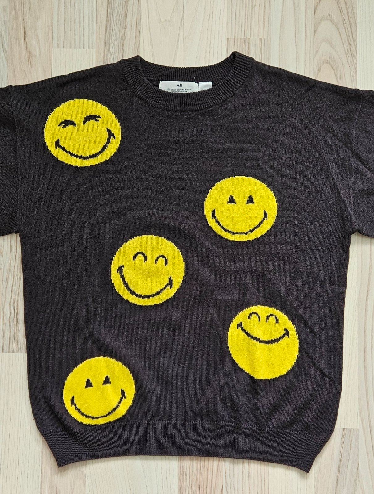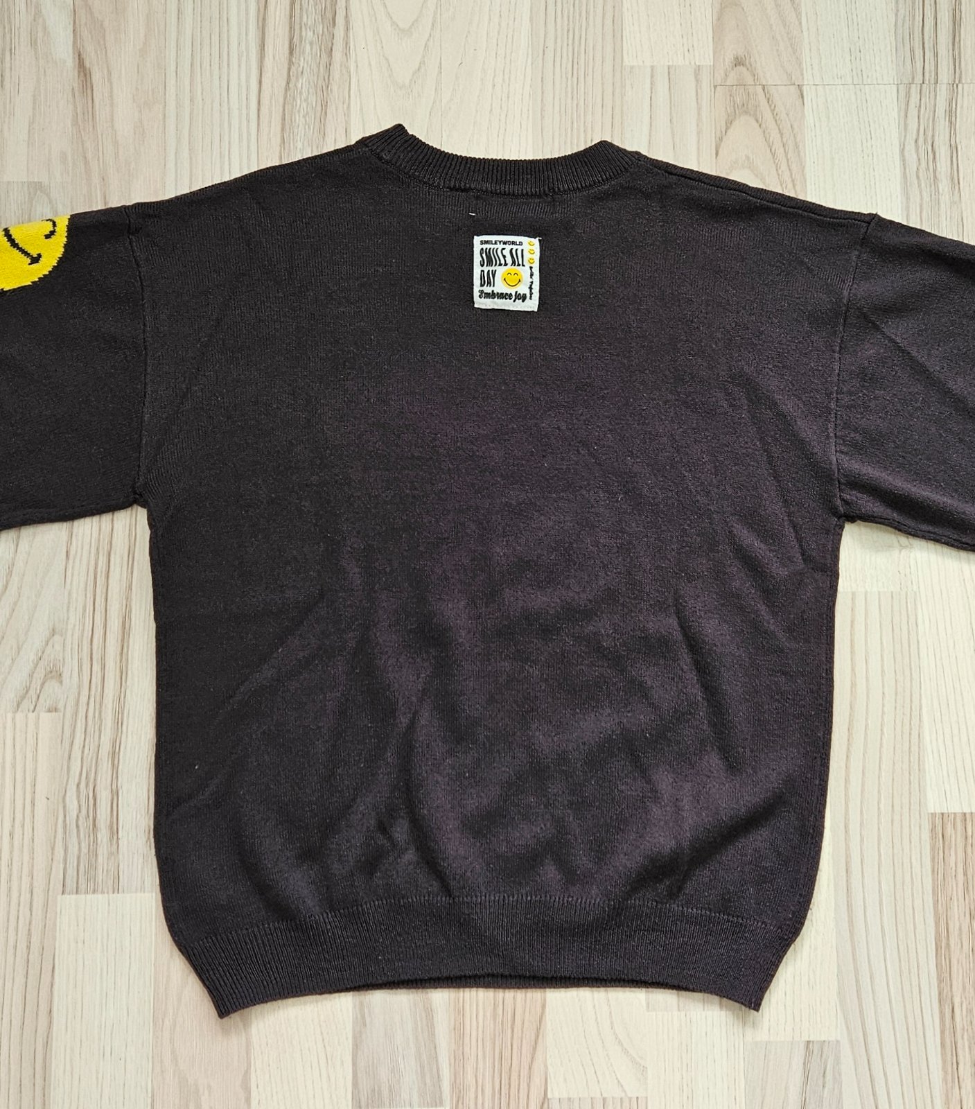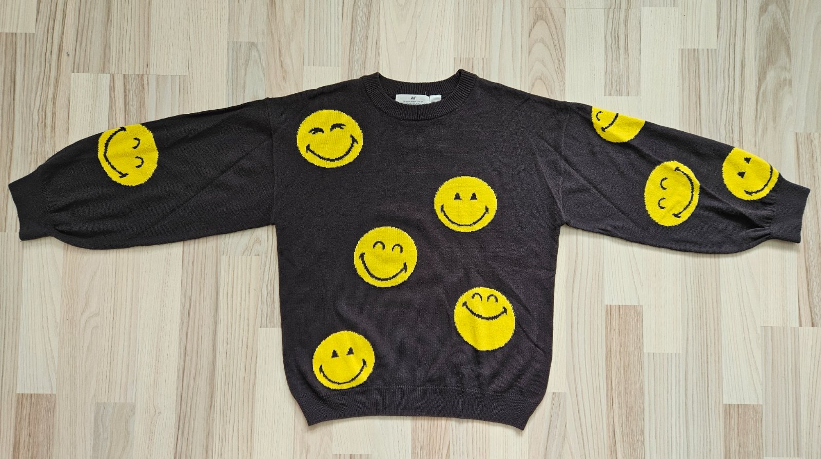 Ponúkam svetrík so smajlíkmi, nosený,má bežné známky používania, sem tam minižmolky,inak bez poškodení. Voľný strih, širšie rukávy. Tenší