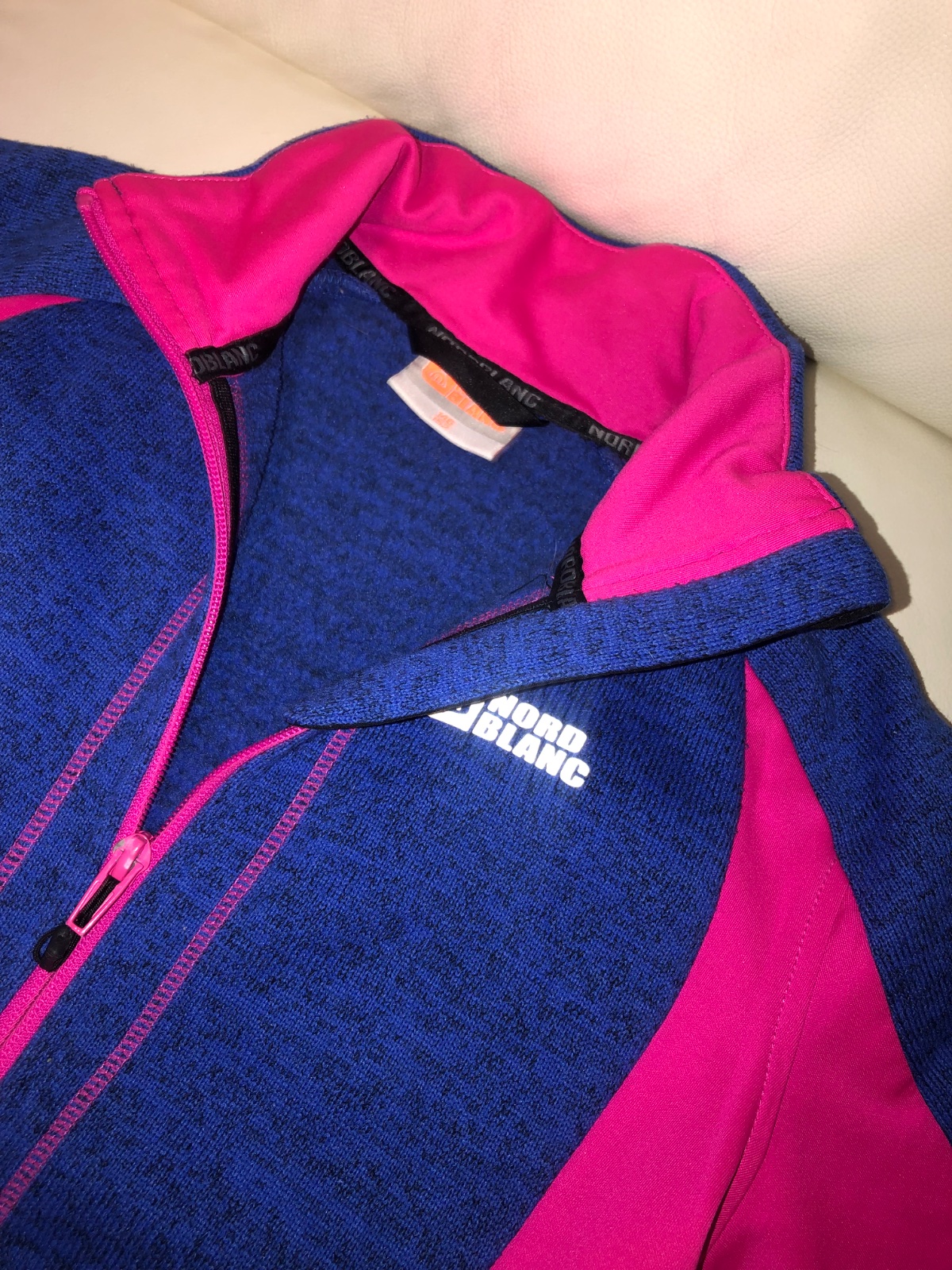Detská fleece mikina NORDBLANC, veľkosť 146-152, vhodná do chladného počasia. Z vonkajšej strany má štruktúru pleteného svetra, z vnútornej strany má hebké a hrejivé brúsenie ako fleece. Je nepoškodená. Vena 15+ postovne