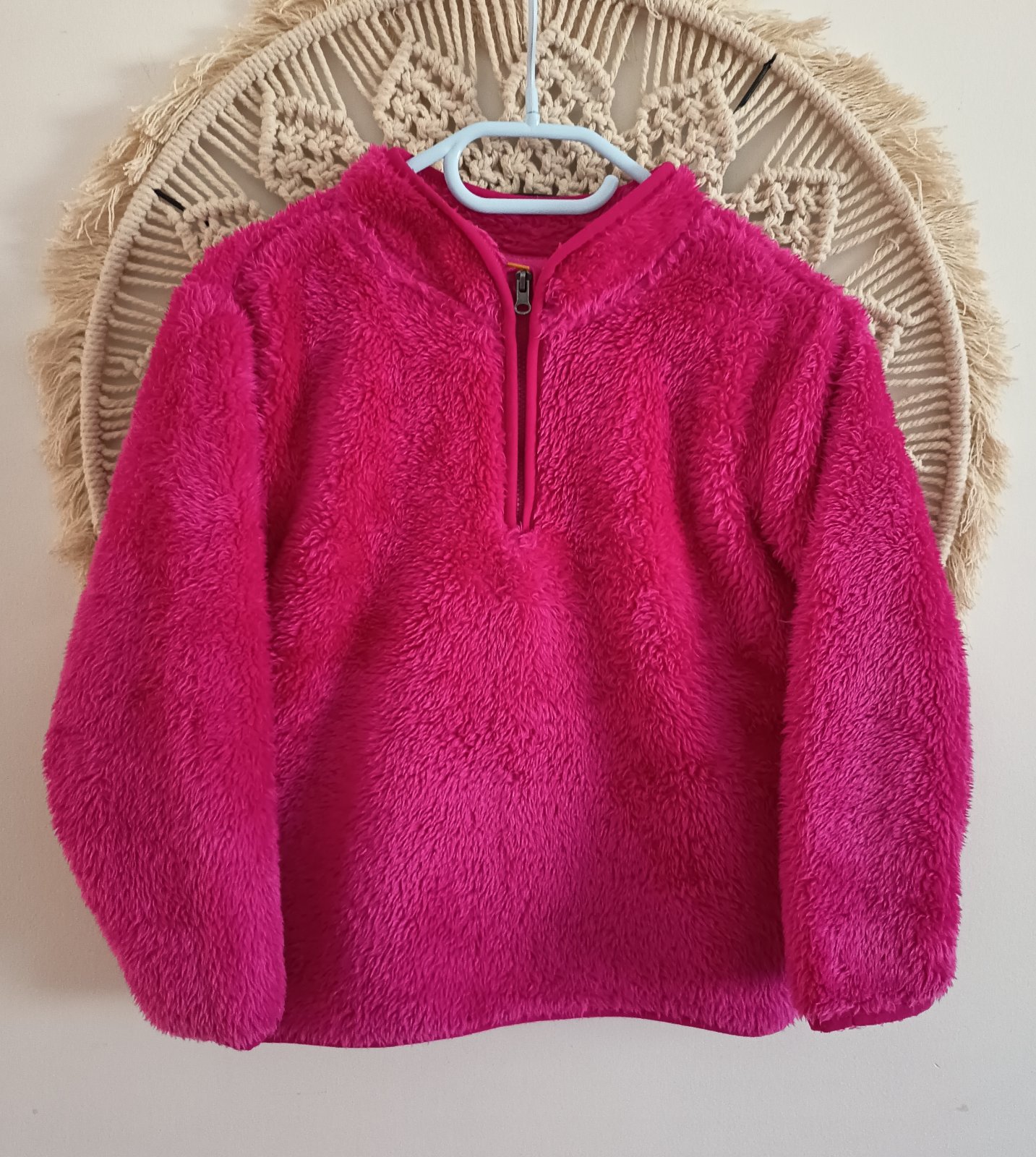 Predam nosenu mikinu len mojou dcerou ma zmolky a trcia nitky pri zipse dolu, nema ine poskodenia , dlzka od pleca 45cm, rukav od krku 48cm, pod pazami 2x37cm, cena bez postovneho