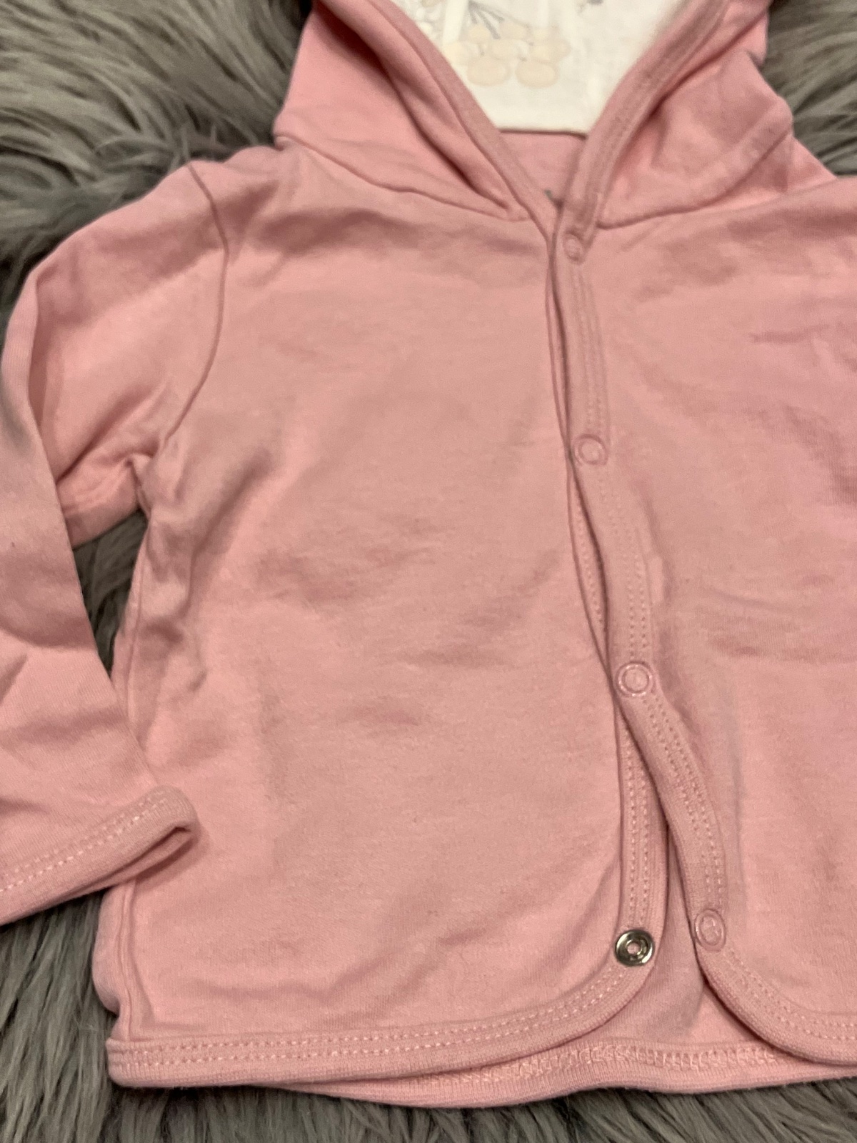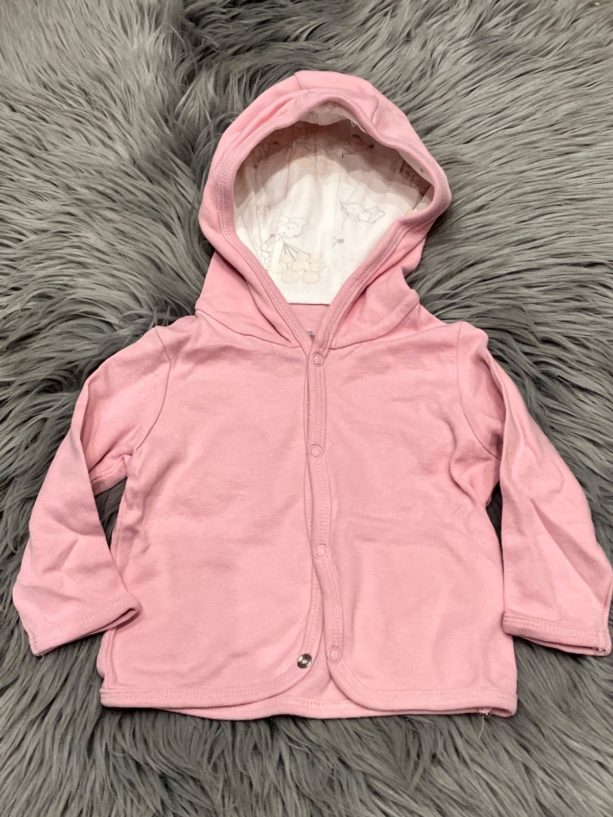 Dievčenská mikina s kapucňou, tenká, zapínanie na cvoky, elastická, materiál 100%bavlna.