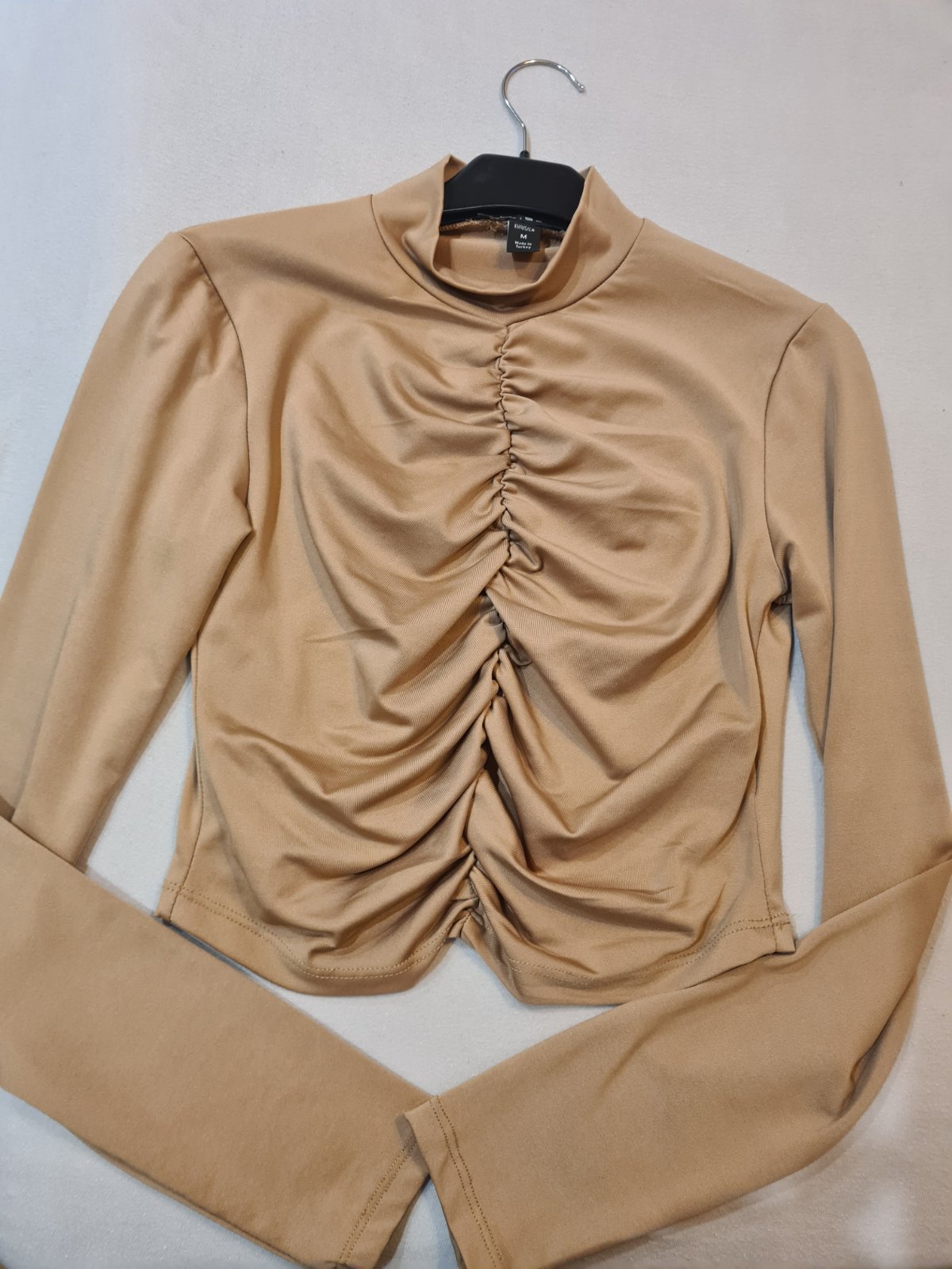 Výborný stav, málo nosený. Dĺžka 58, šírka 37, rukáv 60/70. Príjemný tenký materiál, vhodný pod sveter či hrubší pulóver