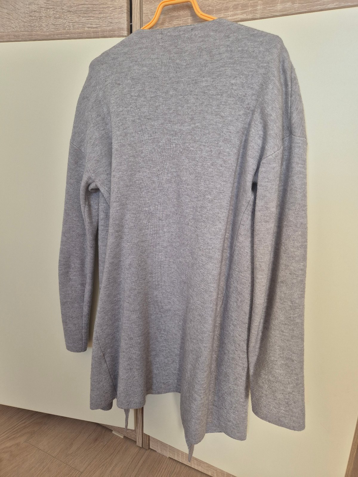 V ponuke krásny dlhší svetrík v bledošedej farbe z RESERVED, veľkosť S/36, aj sedí. Krásny detail čiernej "sukničky" z tylu naspodu, V-čkový výstrih na chrbte. Svetrík bol nosený a patril k mojim o...