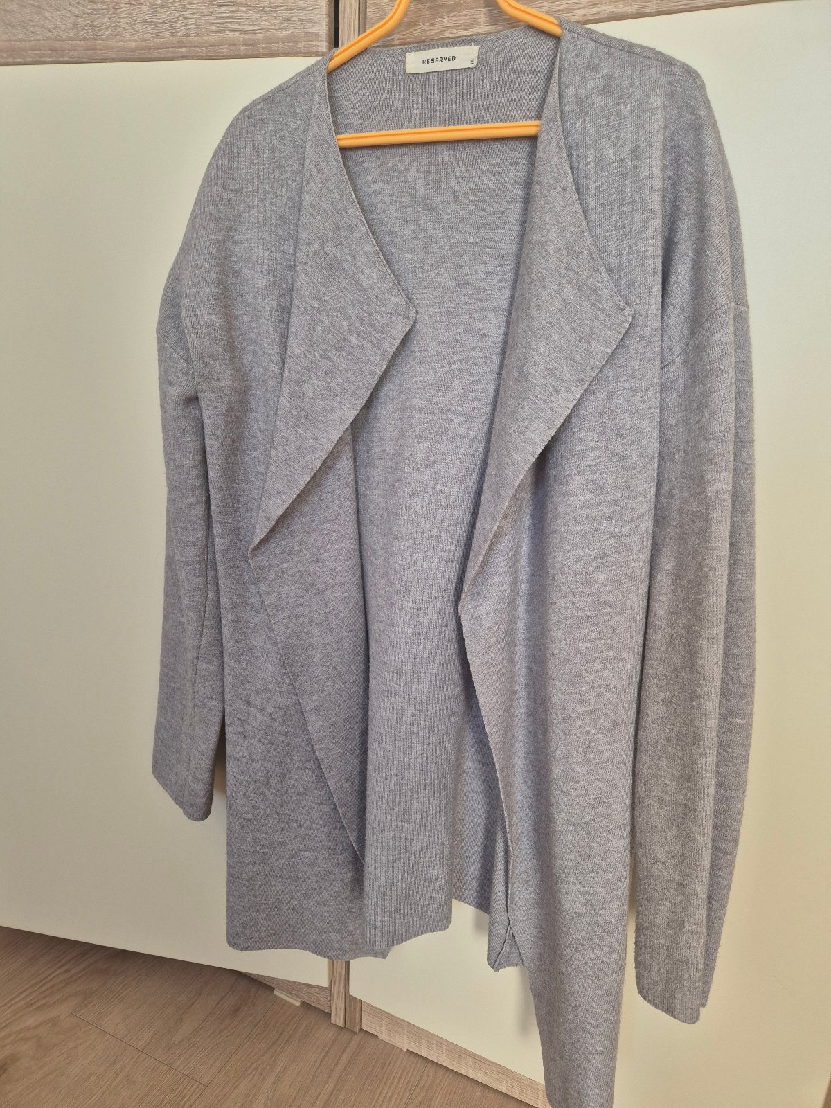 Predám šedý pulóver, voľnejší, rovný výstrih, patent na rukávoch, vrúbkovaný, príjemný materiál. Veľkosť S, zn. Reserved, 1xoblečený. Rifle na predaj v inom inzeráte.