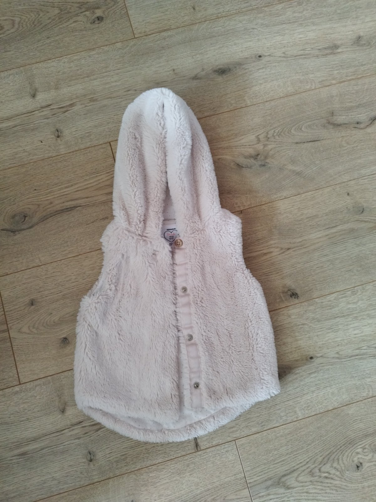 Krásna huňatá vestička zn. F&F. Farba je krémová. Podšitá bavlnou. Ideálna na chladnejsiu jar. Veľmi pekný stav, akurát pri zipse sa trošku šúpe vrchný materiál. Nie je vidieť (prípadne to dať dole...