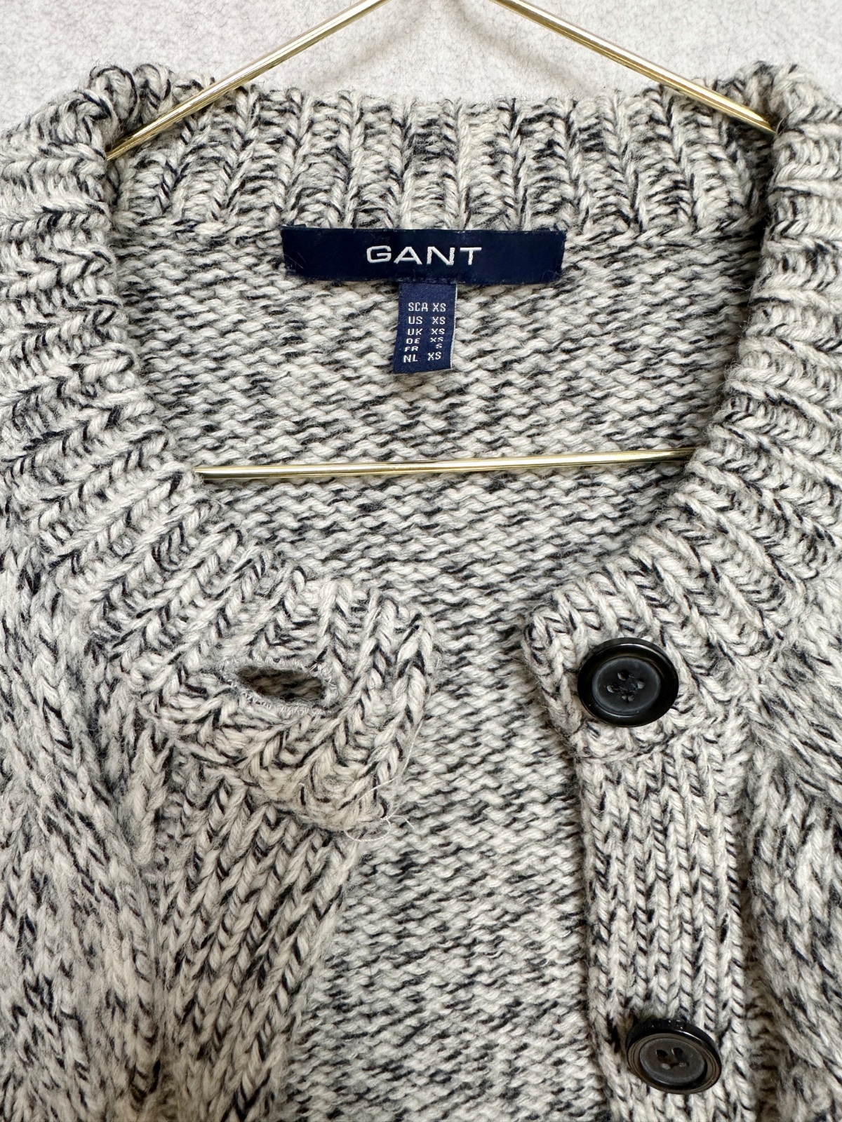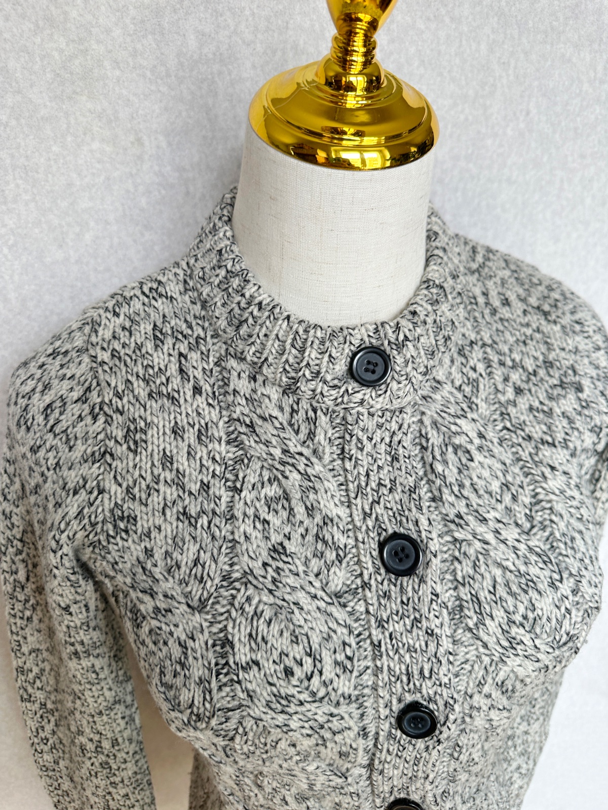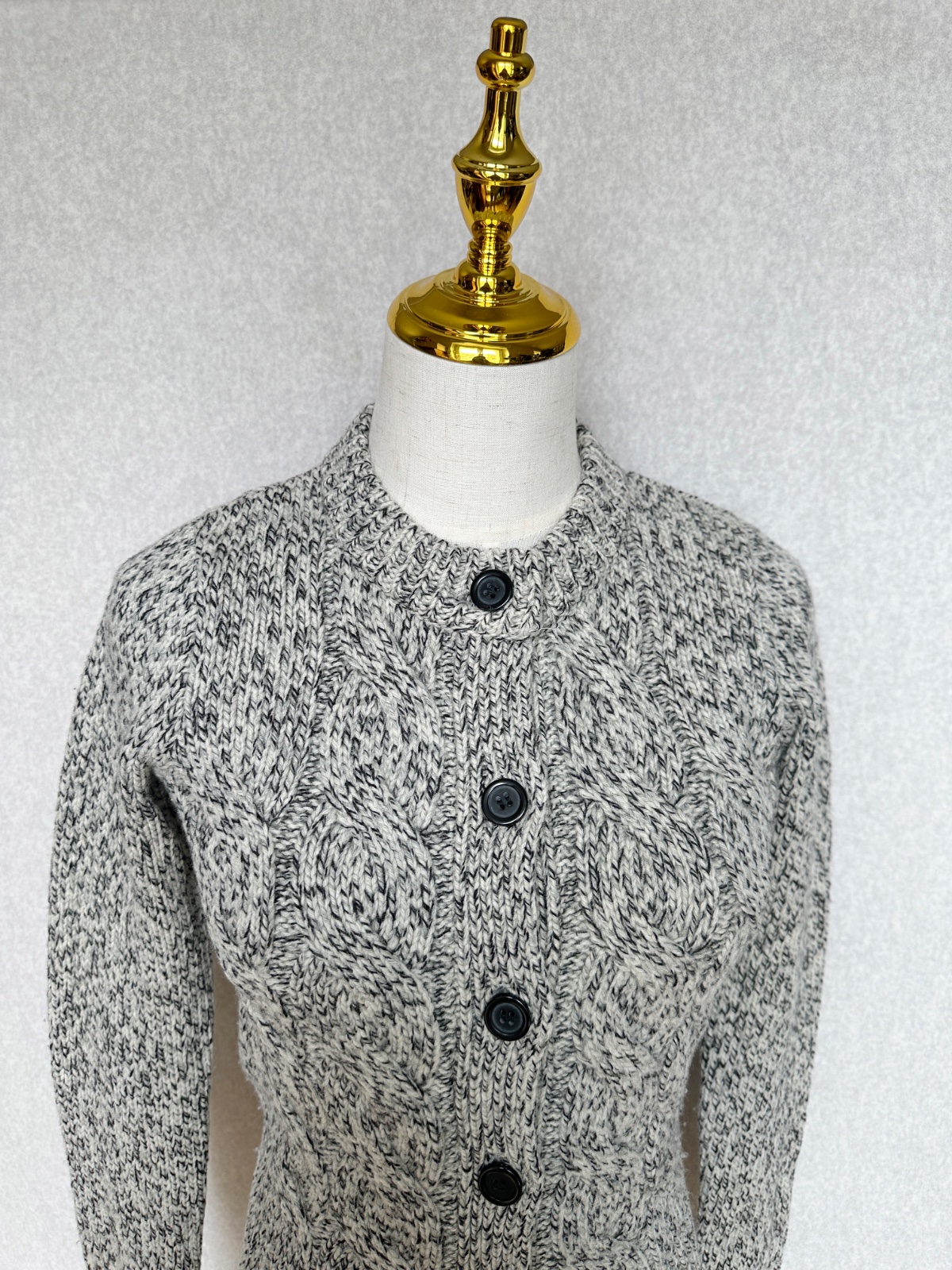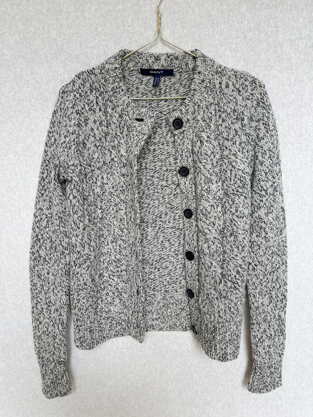 Kvalitný nahrubo pletený sveter v čiernobielom prevedení (celkovo pôsobí ako svetlošedý). Minimálne použitie, v super stave, bez poškodení. Klasický nadčasový kúsok do šatníka na prechodné obdobie, aj na zimu pod kabát. 100% merino vlna - nehryzie, nepichá, príjemný hebký materiál. Pranie v rukách.