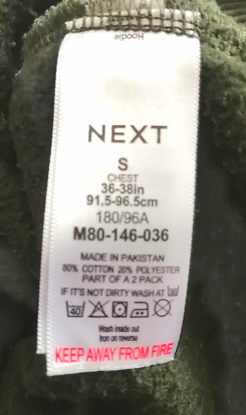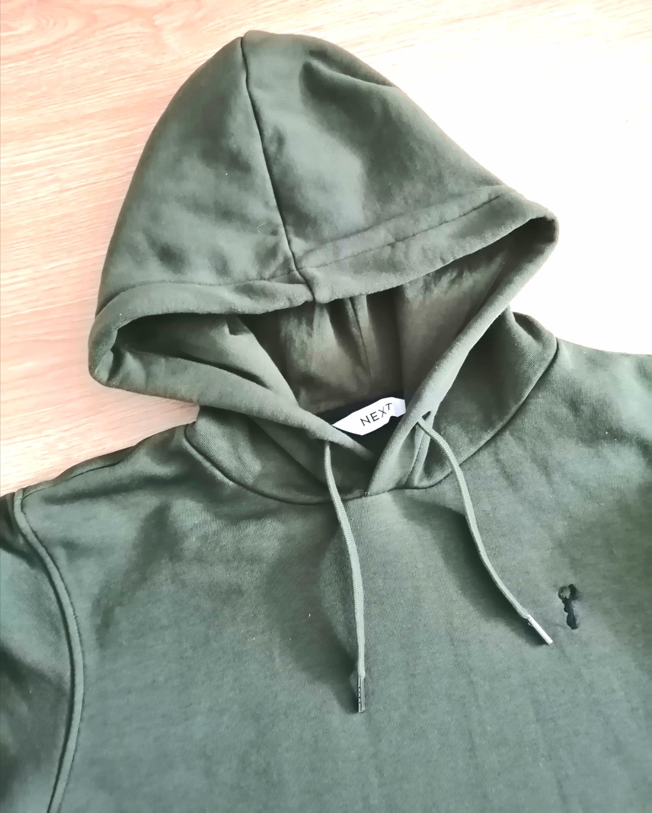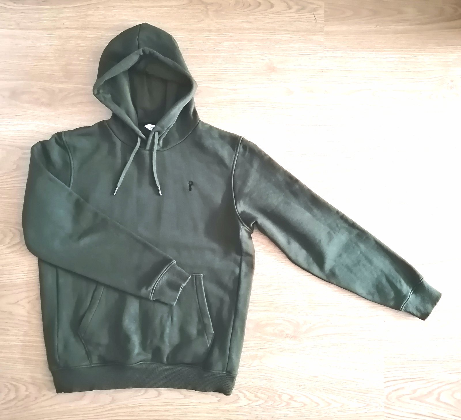 Kvalitná mikina s podšitou kapuckou od Next, v khaki farbe (fotky trochu skresľujú skutočnú farbu), vpredu klokankové vrecko. Veľ. S, rozmery :