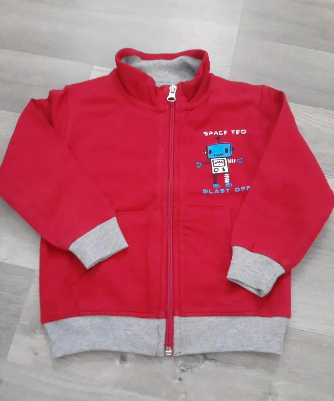 Predám nosenú červenú mikinku s kapucňou C&A, veľkosť č.S. Farba je už trochu bledšia. Vpredu má klokanie vrecko, kde je zašitá malá dierka, ale ani nevidno.