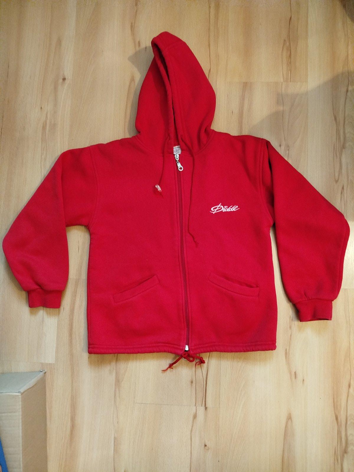 Takmer nenosená mikina, 100% stav. Dĺžka 35cm, šírka 40cm, rukáv od kapucne 58cm. Červená výrazná farba, skôr ako na druhej foto. Č1