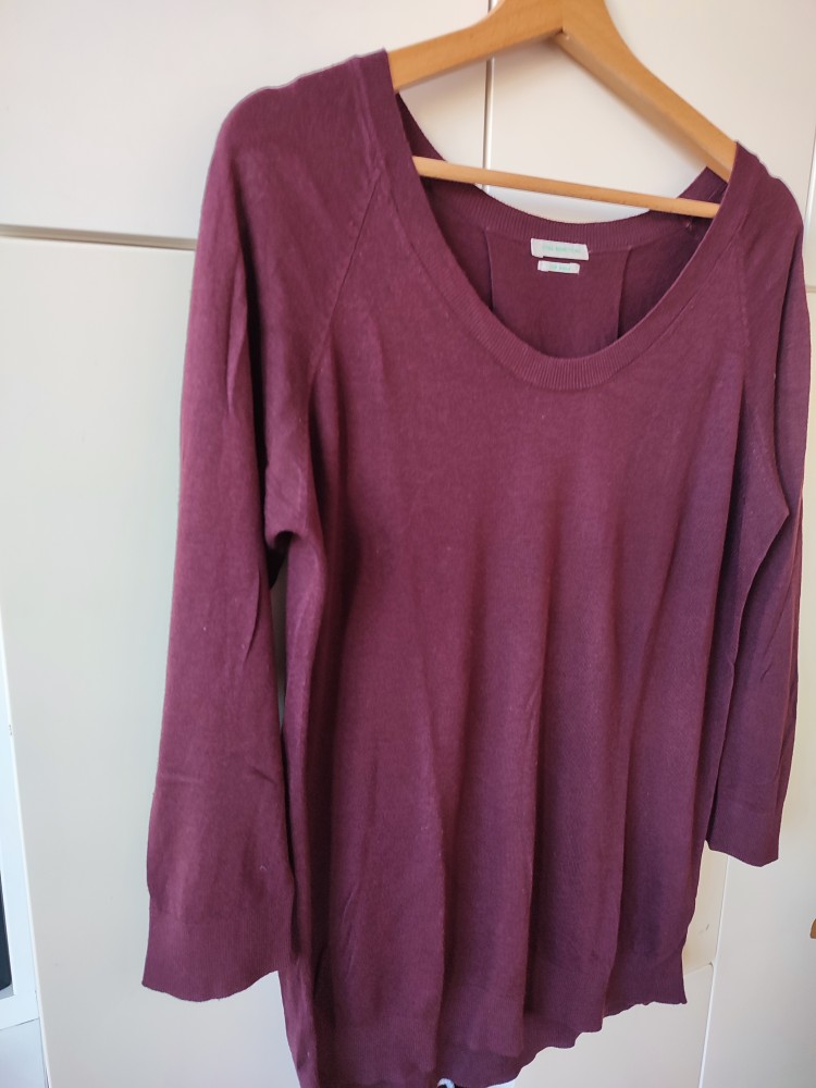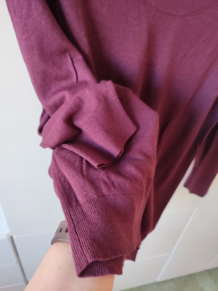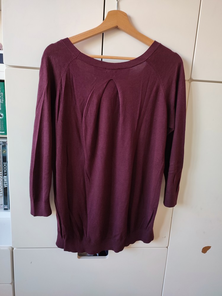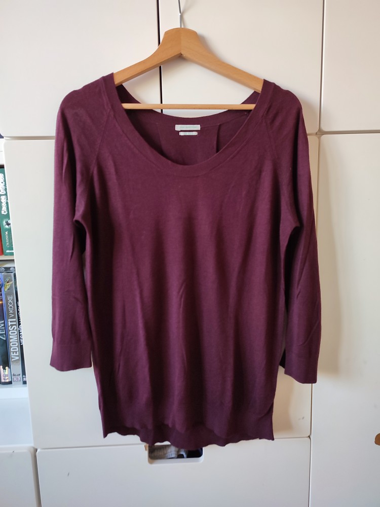 krásny pohodlný top, ja som ho nosila pri veľkosti 38 ako oversize, sedí na L. viskóza - hodváb, je jemnučký, ľahký, odporúčam. 3/4 rukáv. pekný nosený stav.