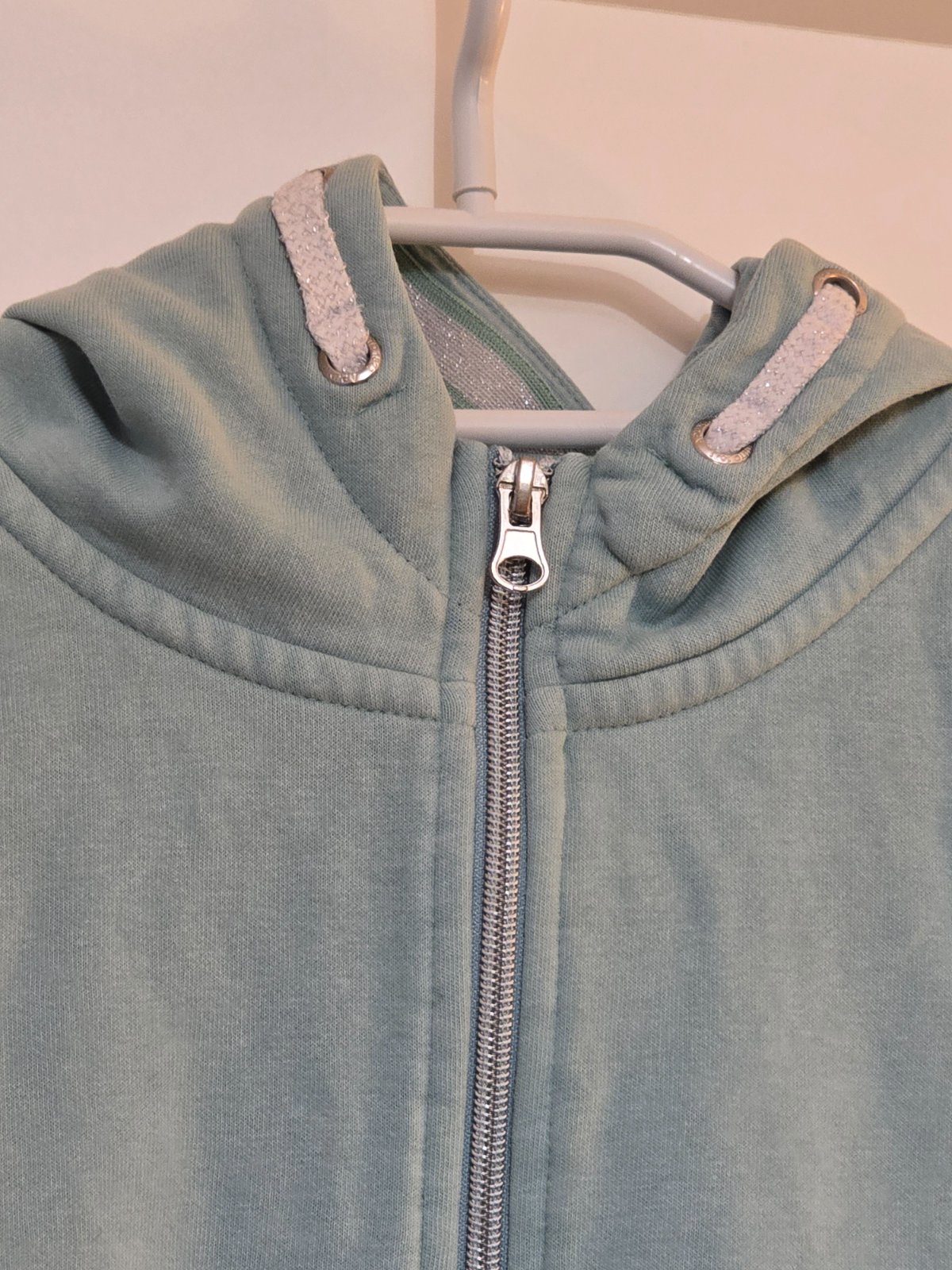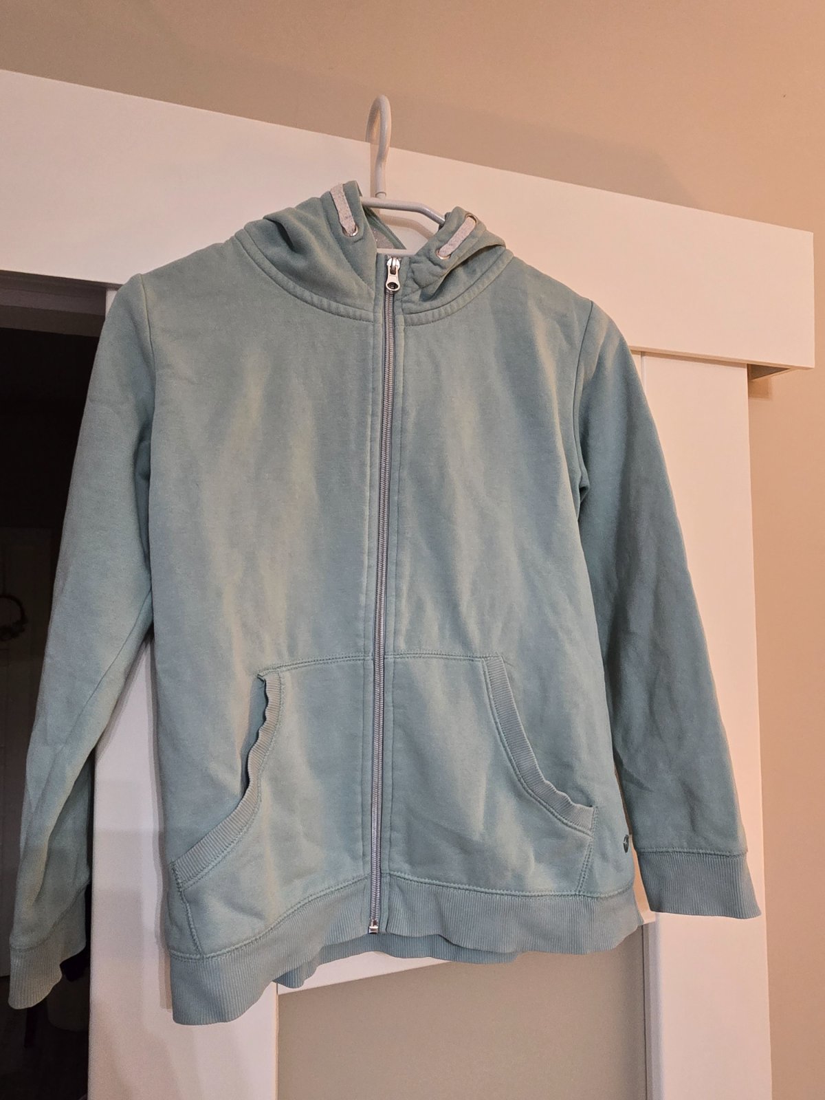 Krasna mikinka super stav, ma ale 3 male fliacky na rukave. Je teplakova, farba taka svetlo modra do tyrkysova. Miery na foto