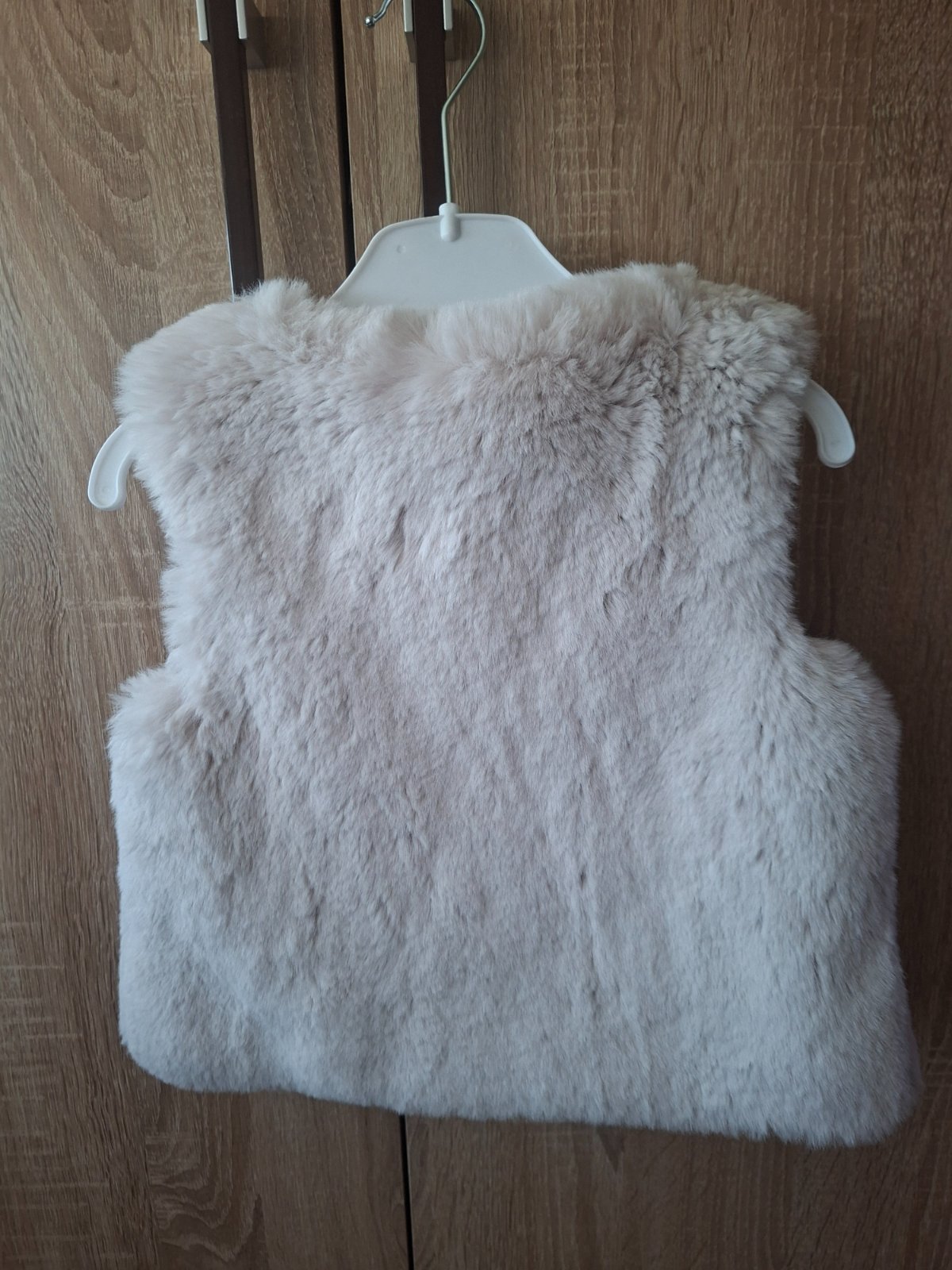 Huňatá kožušinková vesta so zapínaním na gombík. Celková dĺžka 32cm,šírka je 32 cm.