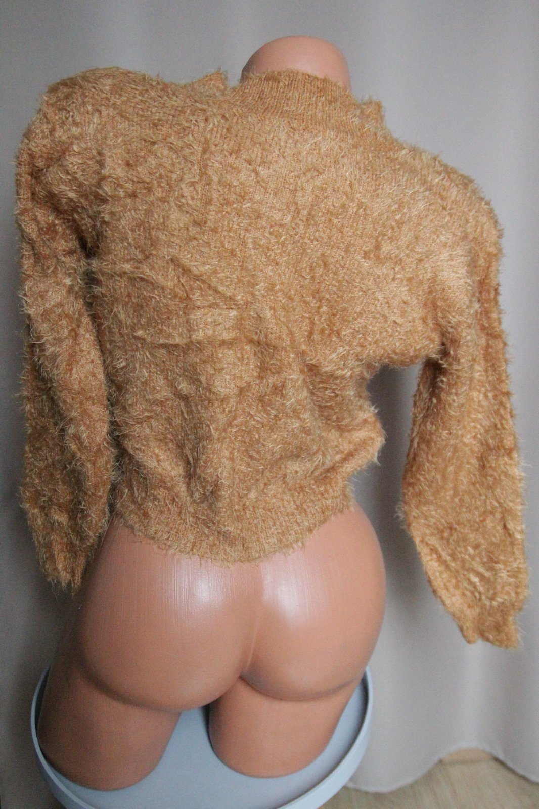 Kratší - crop chlpatý mäkký sveter v horčicovej farbe. Veľkosť M.