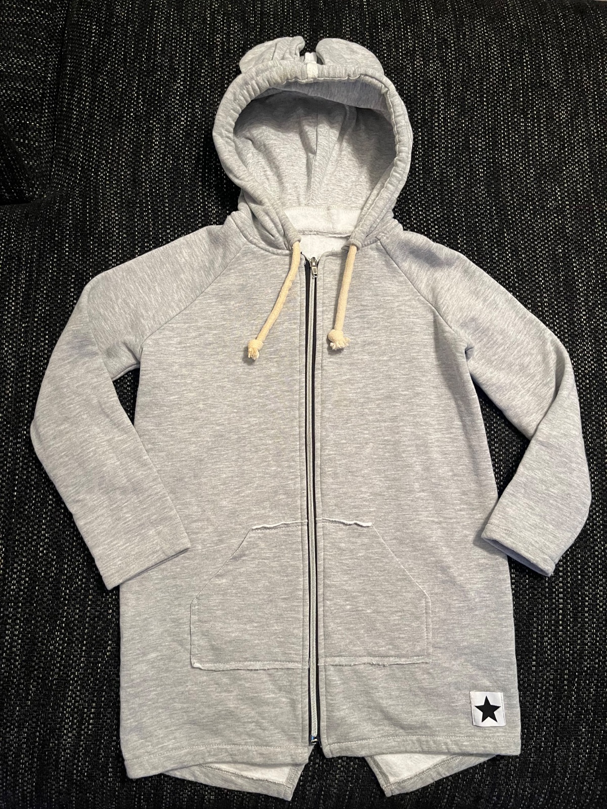 Super predlzena zateplena mikinka s uskami, rukavy sa daju zahnut, prisposobit, su bez patentu, da sa nosit az do velkosti 134.