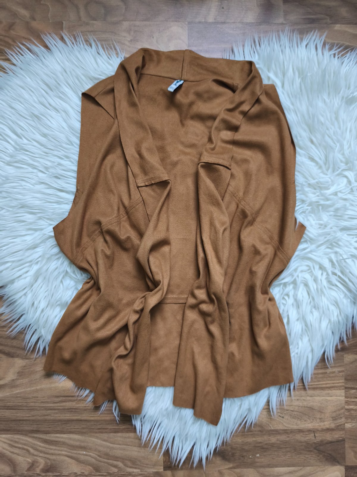 Dámska štýlová tenká vesta, materiál podobný brúsenej koži.