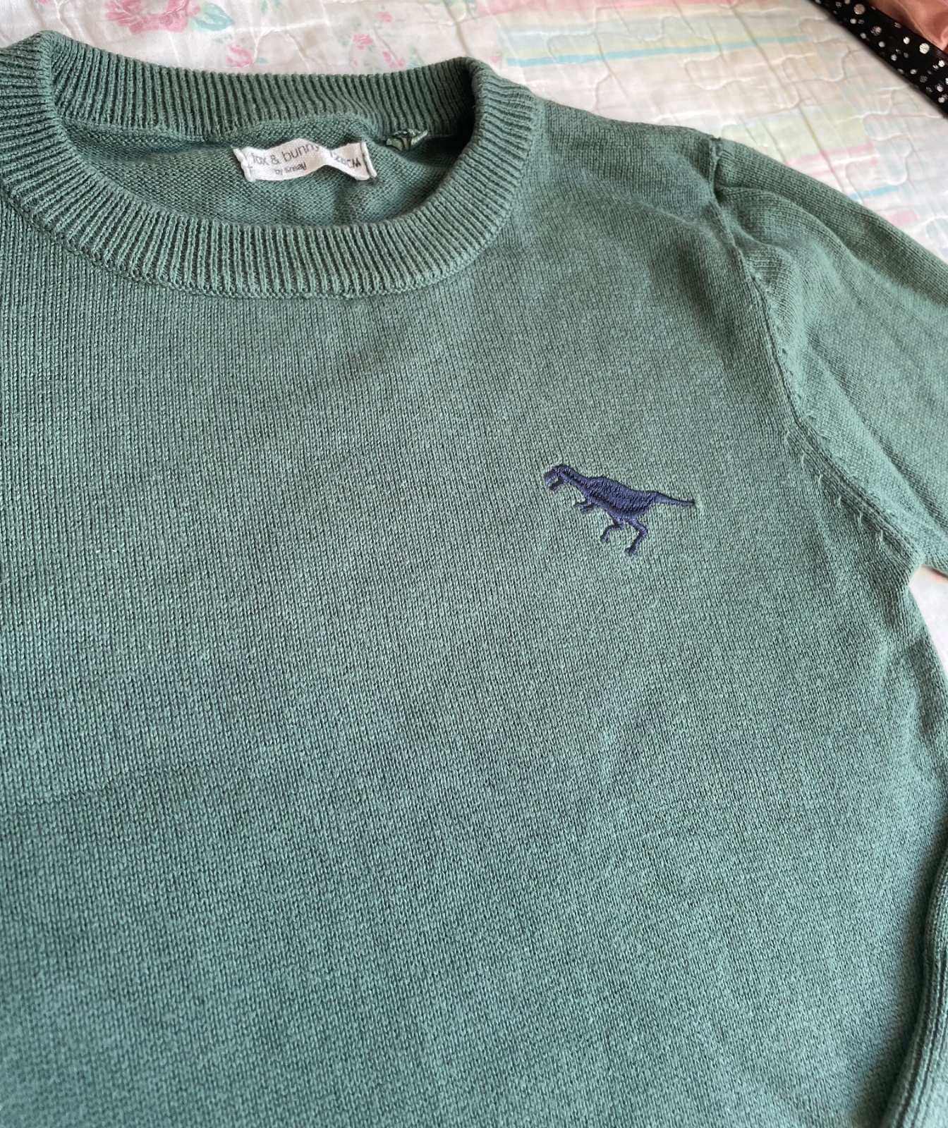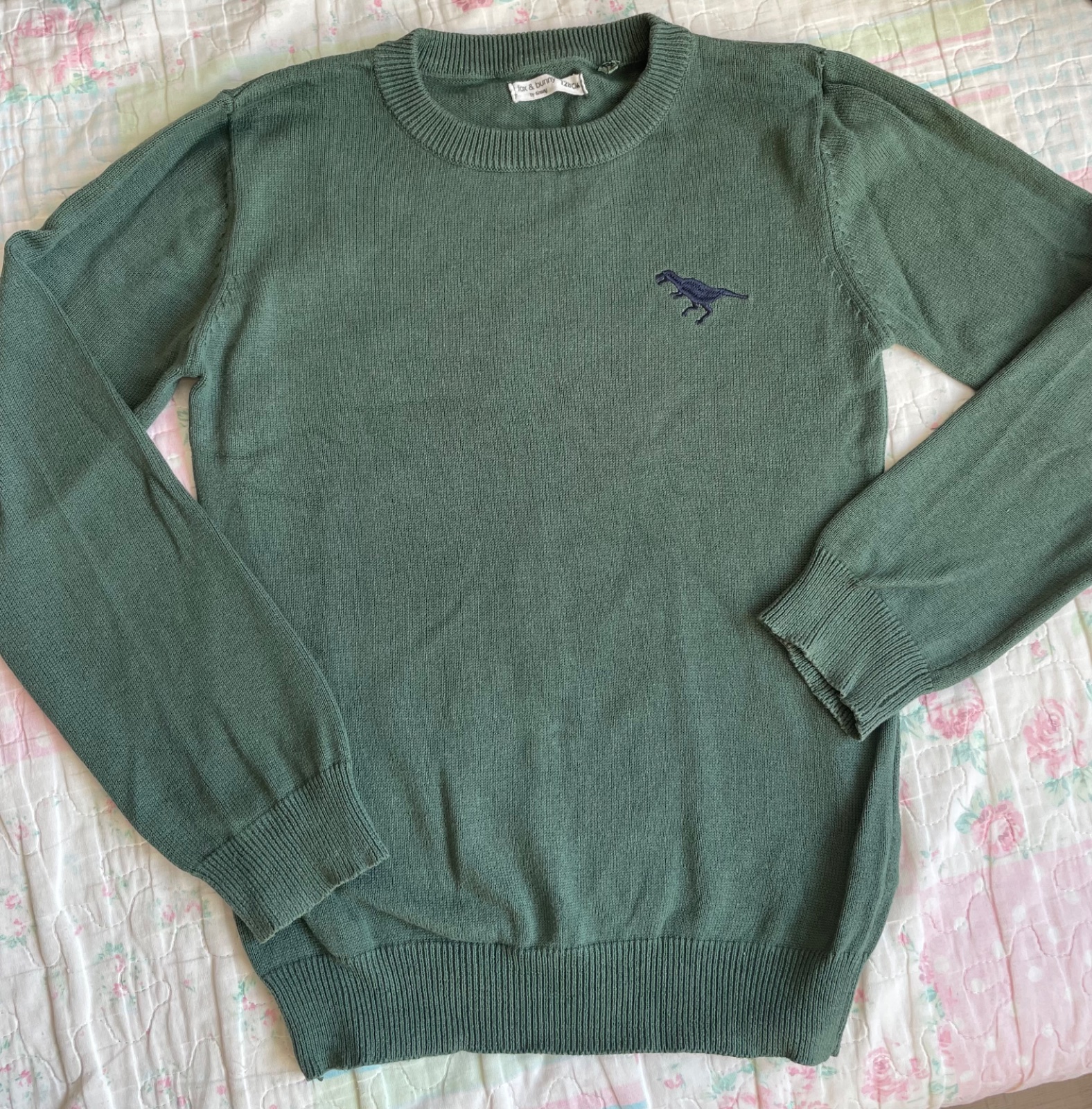 Pekný tmavozelený svetrik s dinosaurom,ktorý je síce zo sinsay,ale veľmi vydarený,prakticky a príjemný.Noseny skôr príležitostne.Prva foto najrealnejsie zobrazuje farbu.TOP stav🌲👞cena+ posta