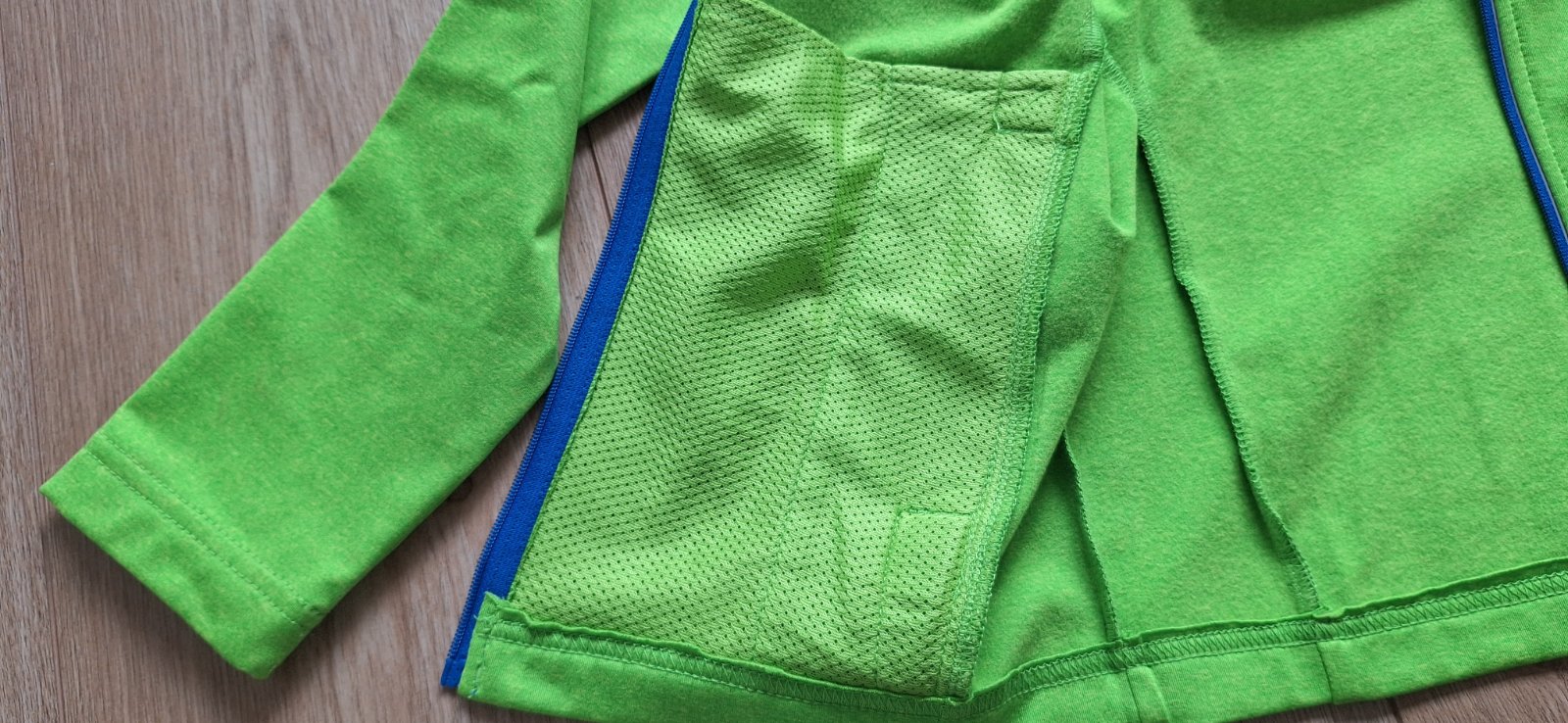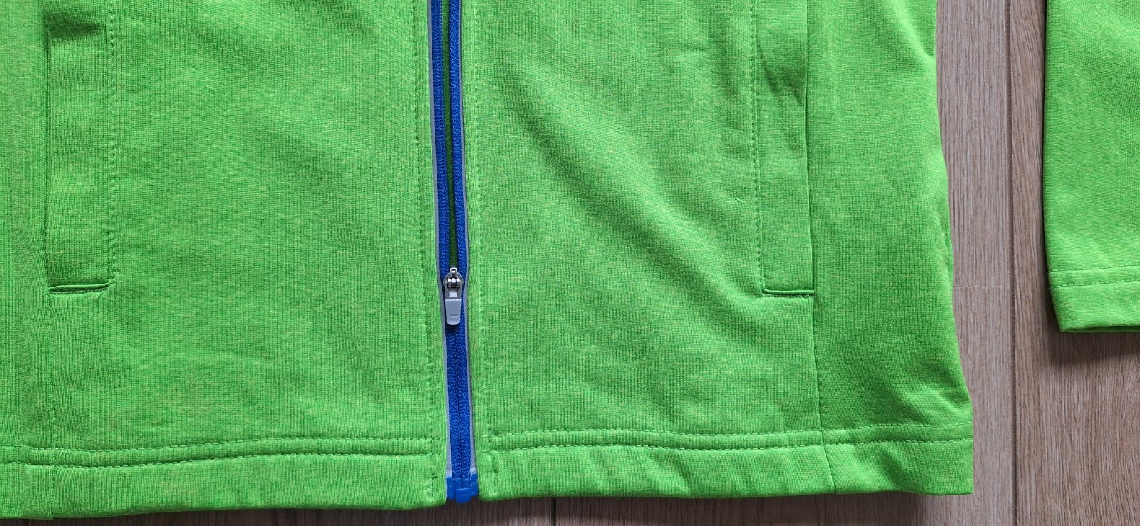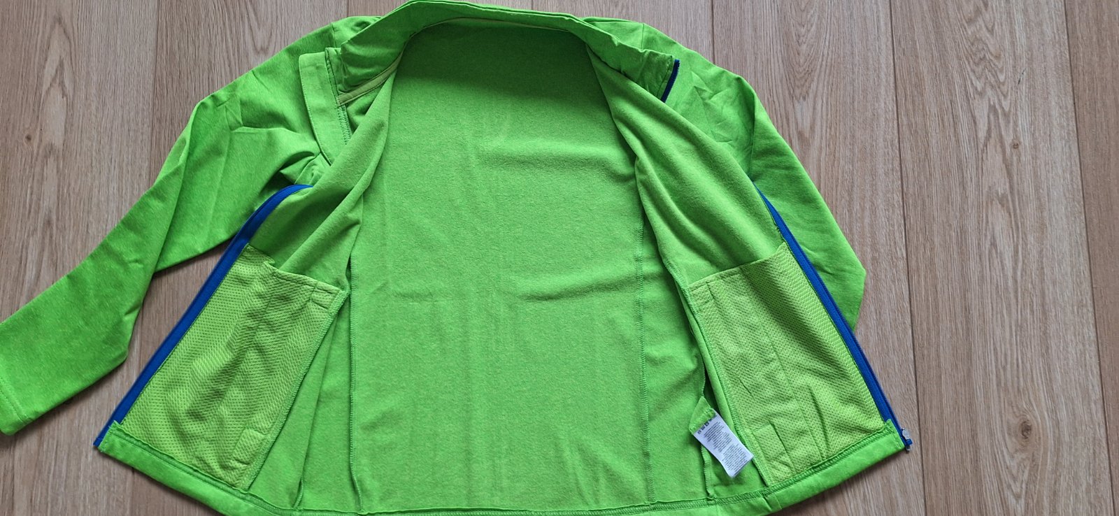 Krásna výrazná farba, veľkosť uvedená 140/146. Má dve vrecká na zips a aj vnútorné vrecká. Dĺžka 54cm, šírka 42cm, rukáv 53/61cm. Je nová