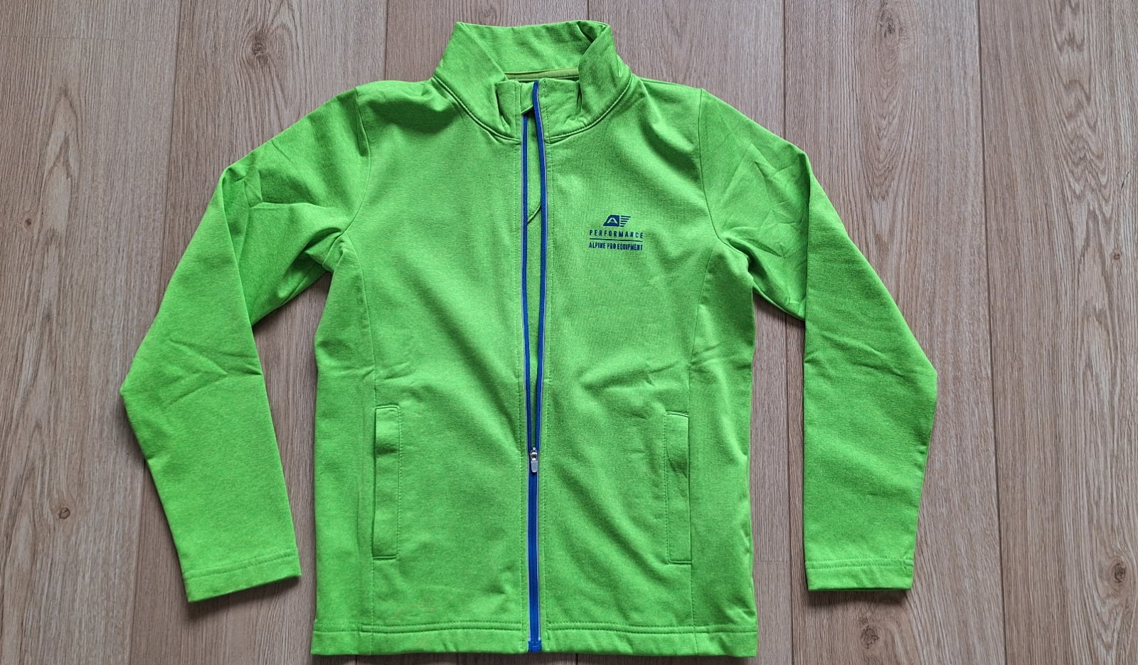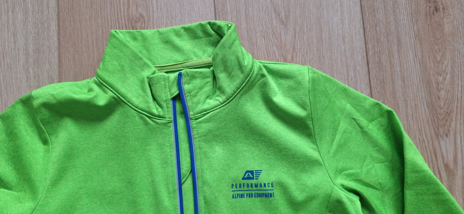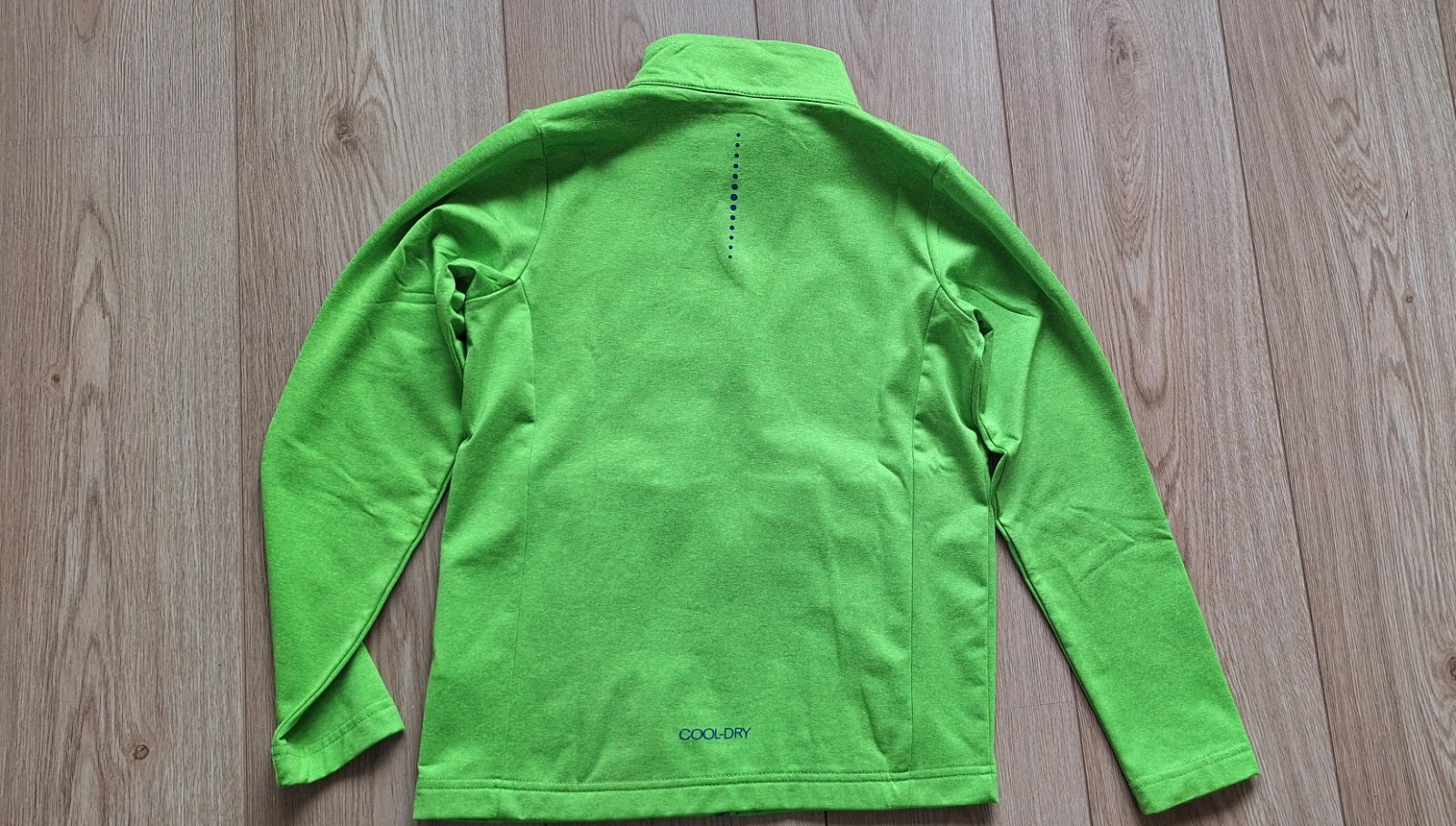 Krásna výrazná farba, veľkosť uvedená 140/146. Má dve vrecká na zips a aj vnútorné vrecká. Dĺžka 54cm, šírka 42cm, rukáv 53/61cm. Je nová