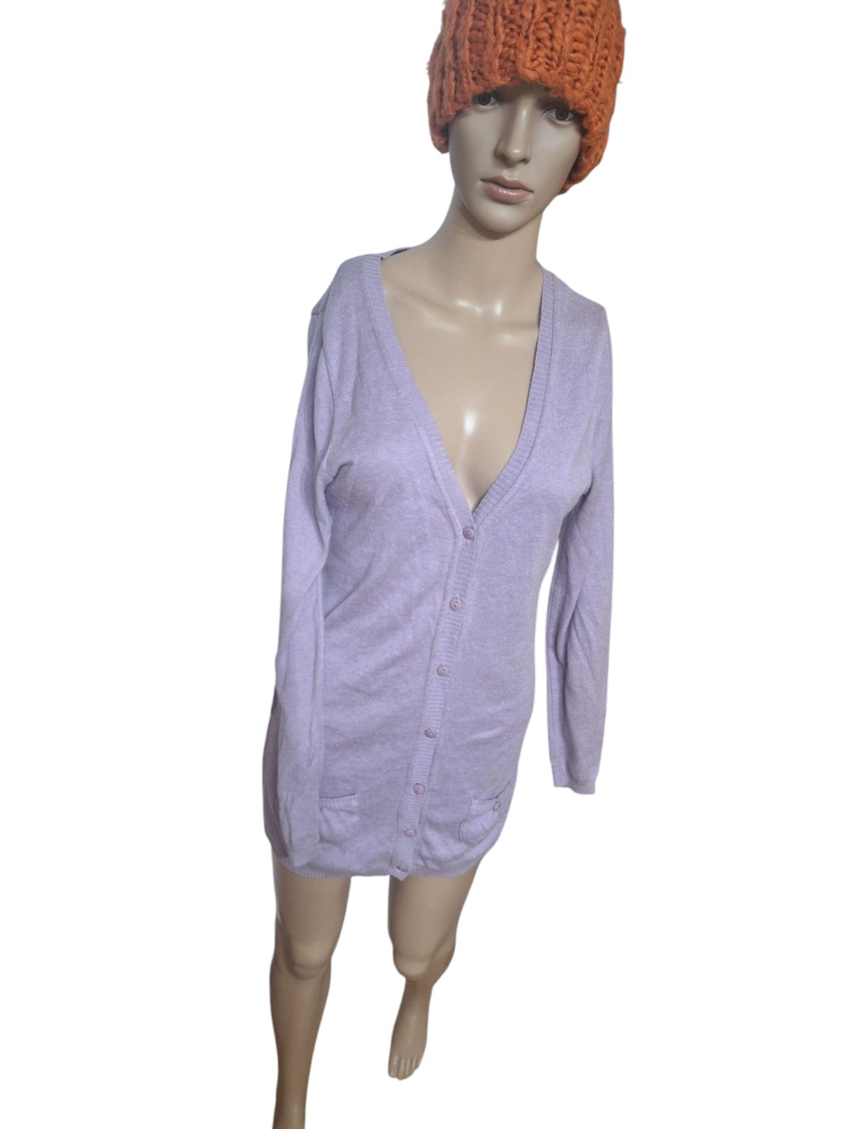 Dámsky značkový svetrík na zapínanie. Je elastický. Dĺžka je 75cm,obvod hrudníka je 84cm a obvod pása je 80cm. Dĺžka rukáva je od krku 65cm. kód 143A