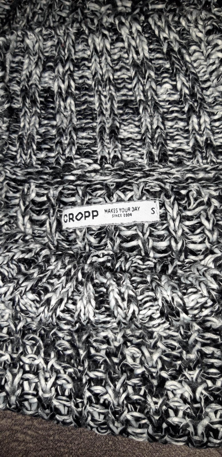 Pekny kratky kardigan velkost S ,dlhy je bez tych uzlikov 45cm,rukav od krku 60cm a cez prsia 55x2 ,vyborny stav ,je to pletene