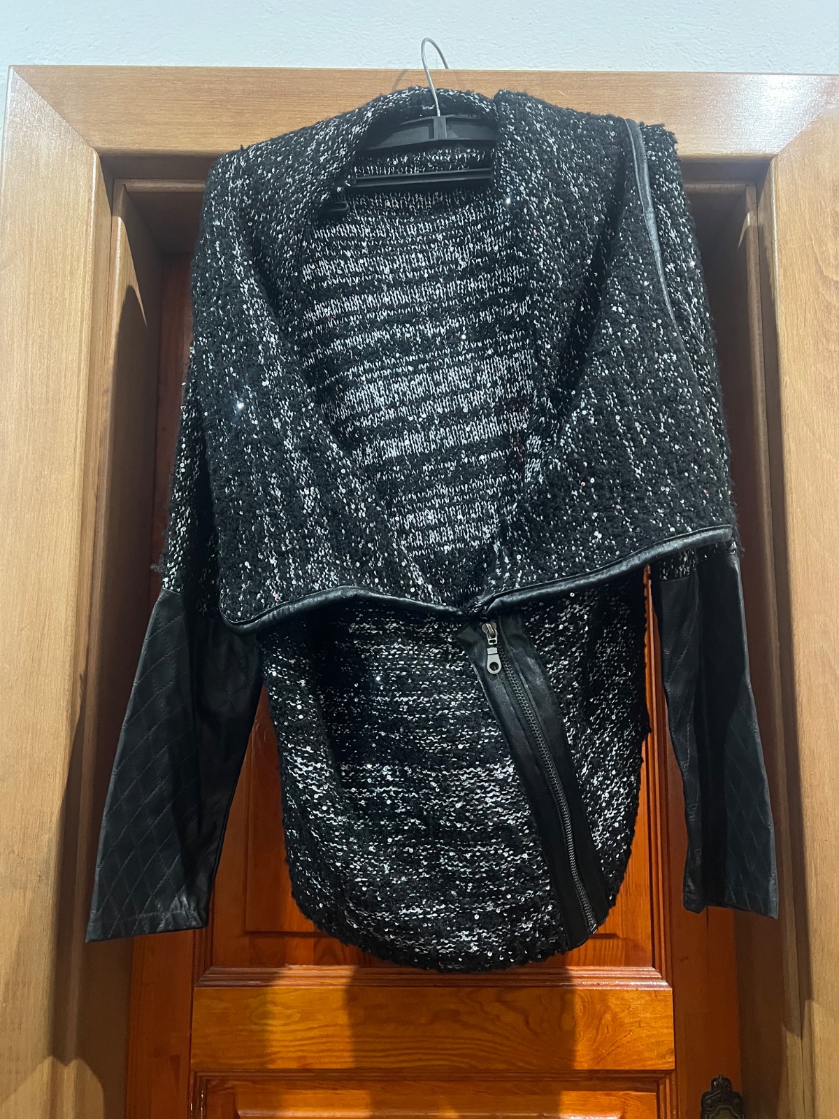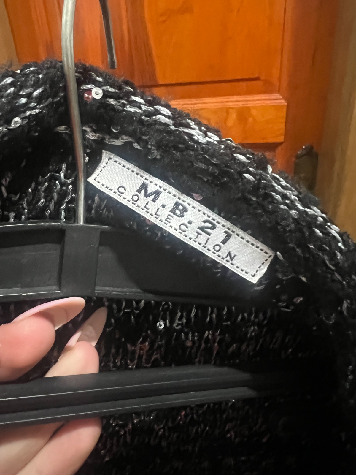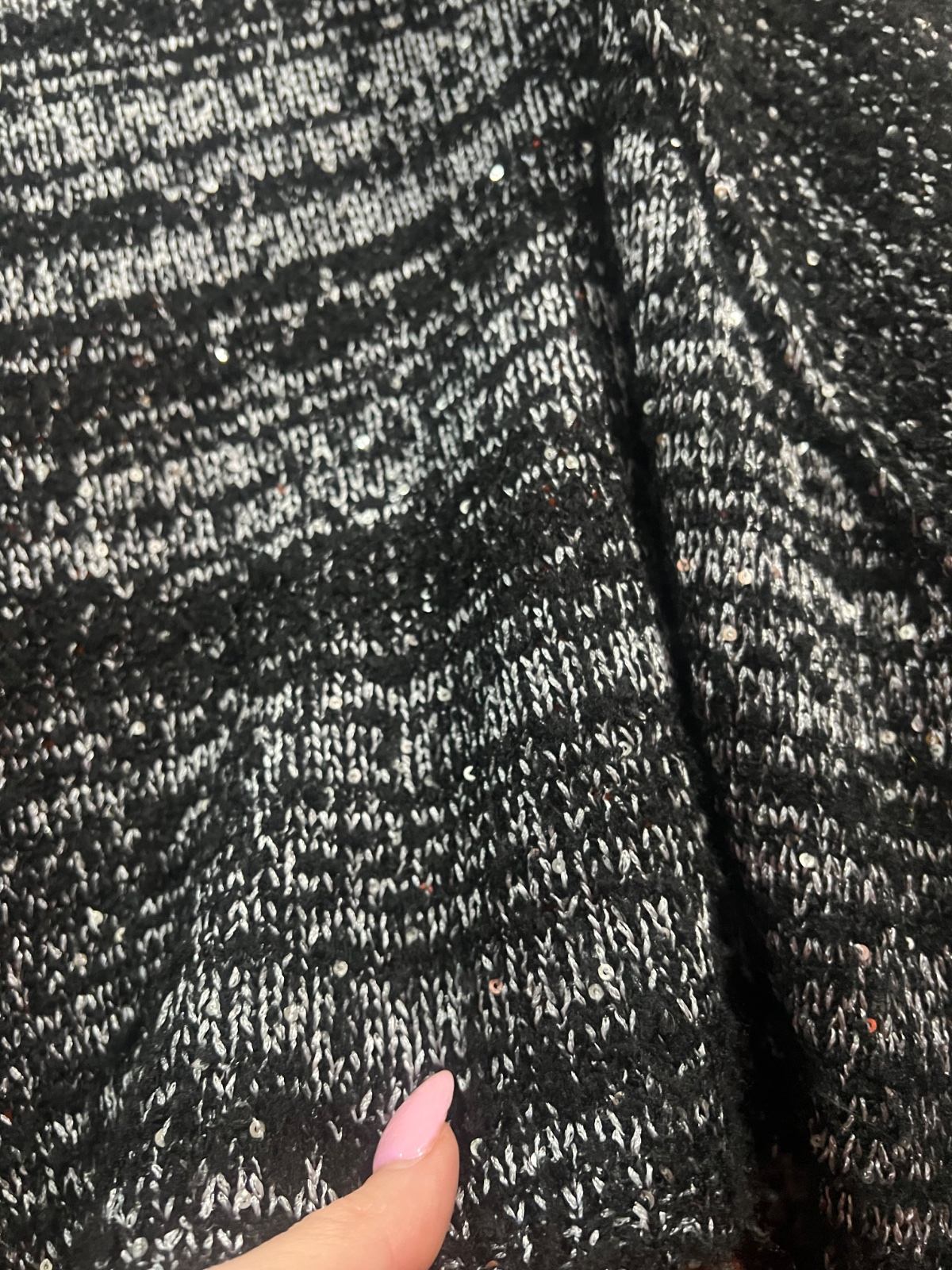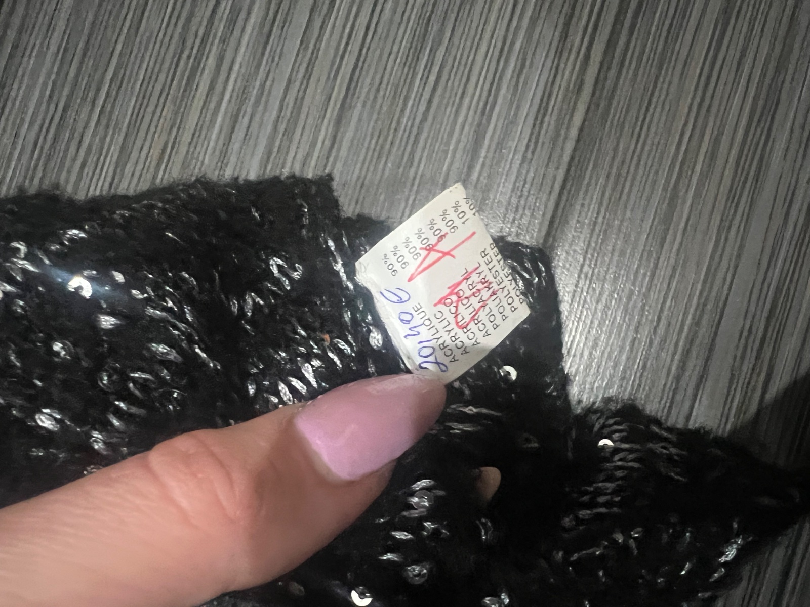 Krásny svetrík sýto čierny dĺžka 90 šírka popod pazuchy 49 až 50 krát 2 v zapnutom stave elastický roztiahne sa podľa potreby