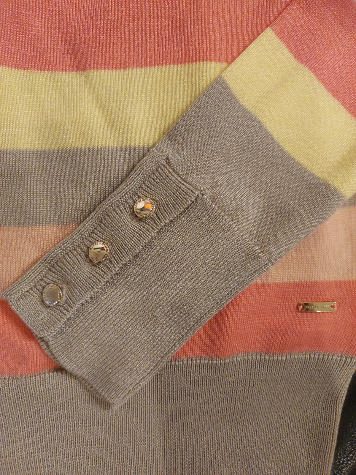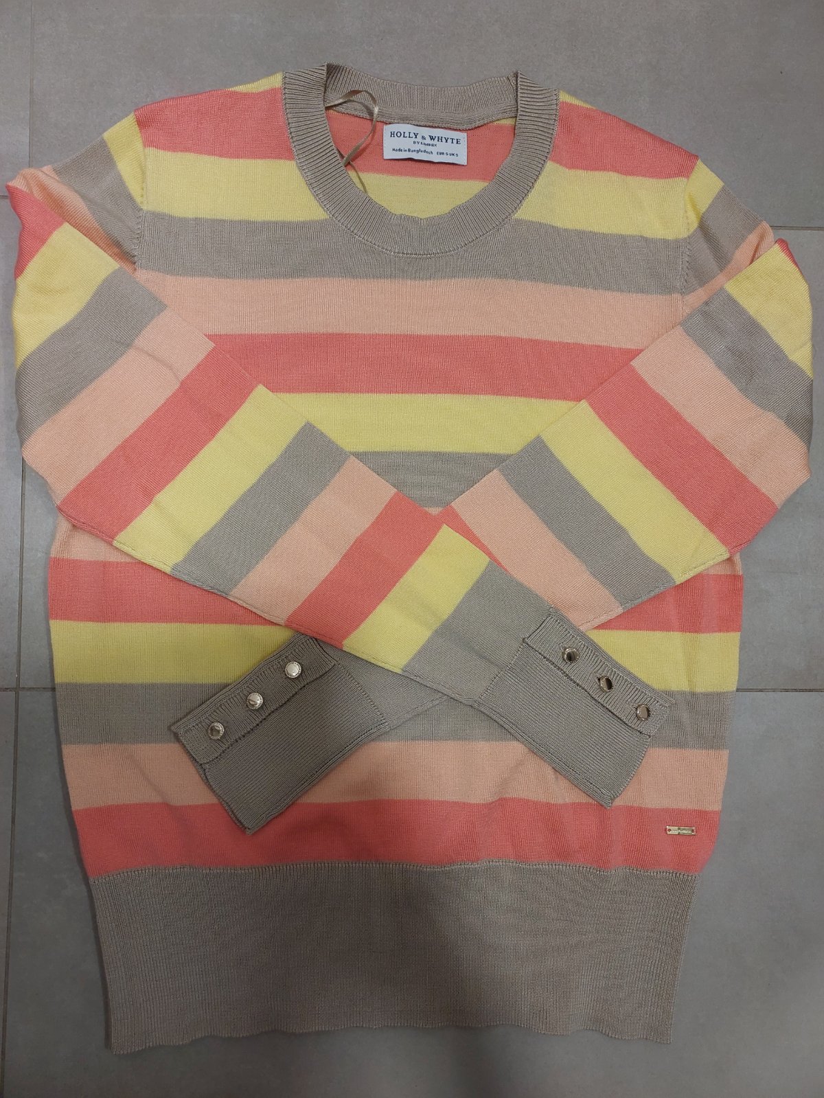 Novy, tenky pasikavy svetrik, prijemny material, krasne detaily. Len odstranena visacka, nebol ani raz obleceny. Velkost S.