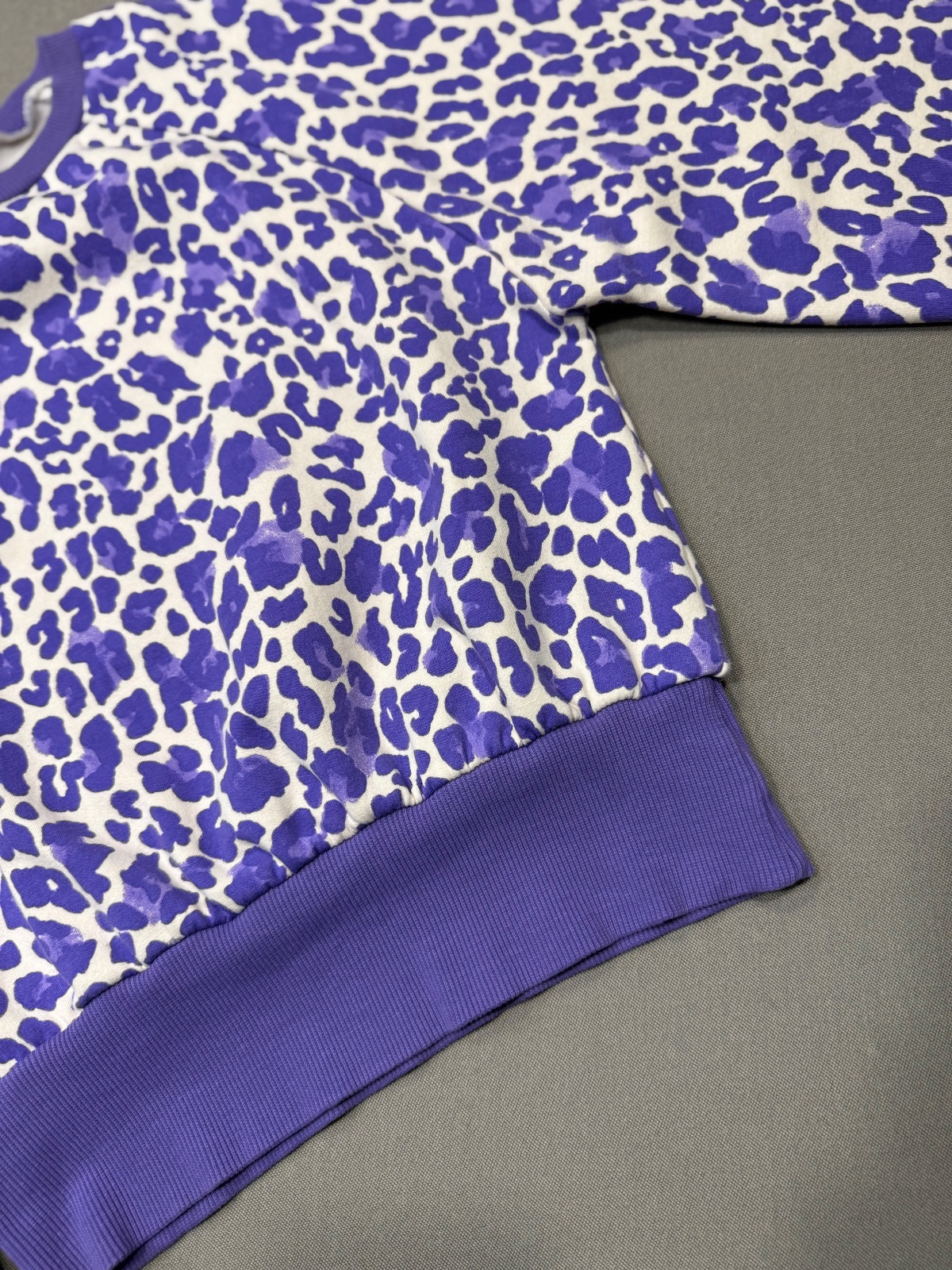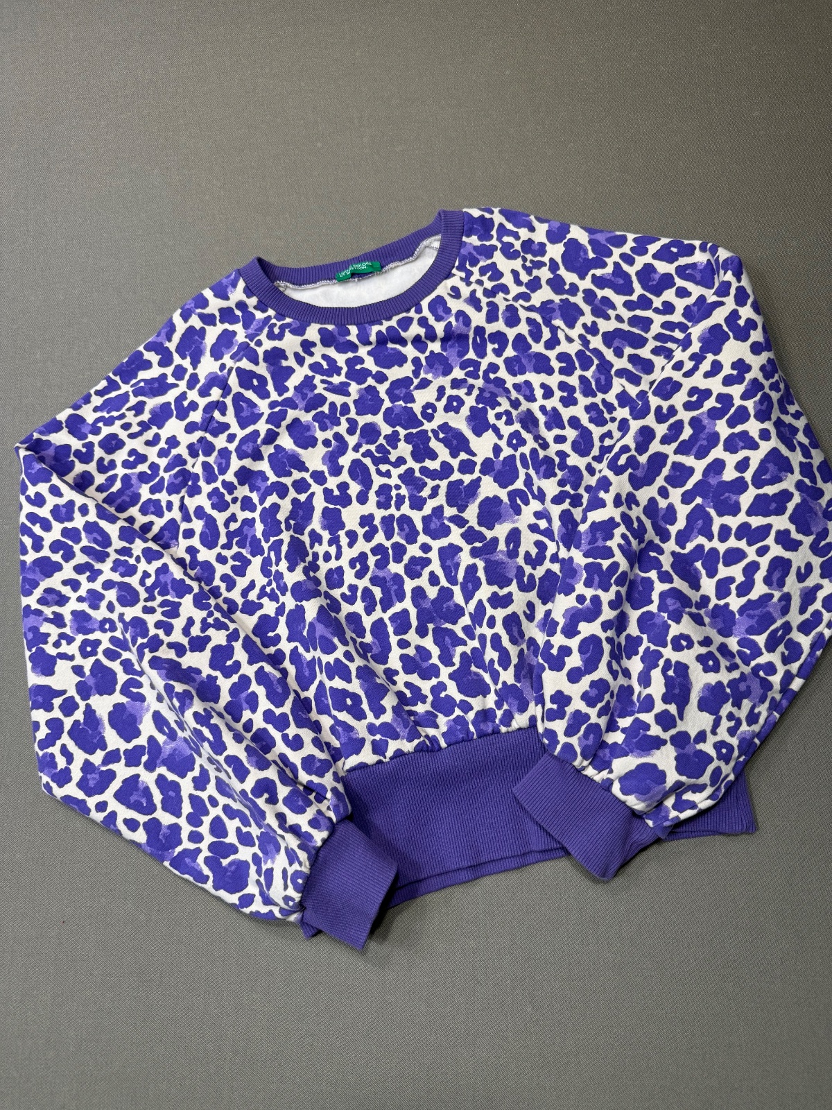 Štýlová mikina v štýle croptop so širokými rukávmi. Veľkosť 11-12 rokov. Cca 146. Celková dĺžka 49cm, sirka cez hrudnik 43cm, dĺžka rukaviku od krku 66cm.