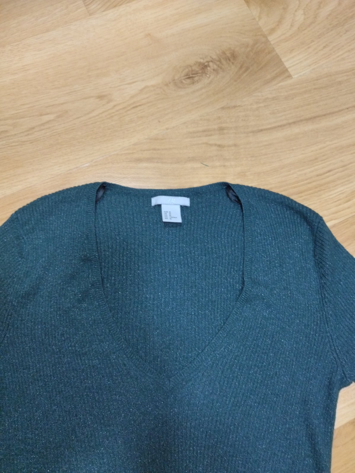 H&M Slávnostný tenký pulóver s V.éčkom sýtej tmavo zelenej farby.