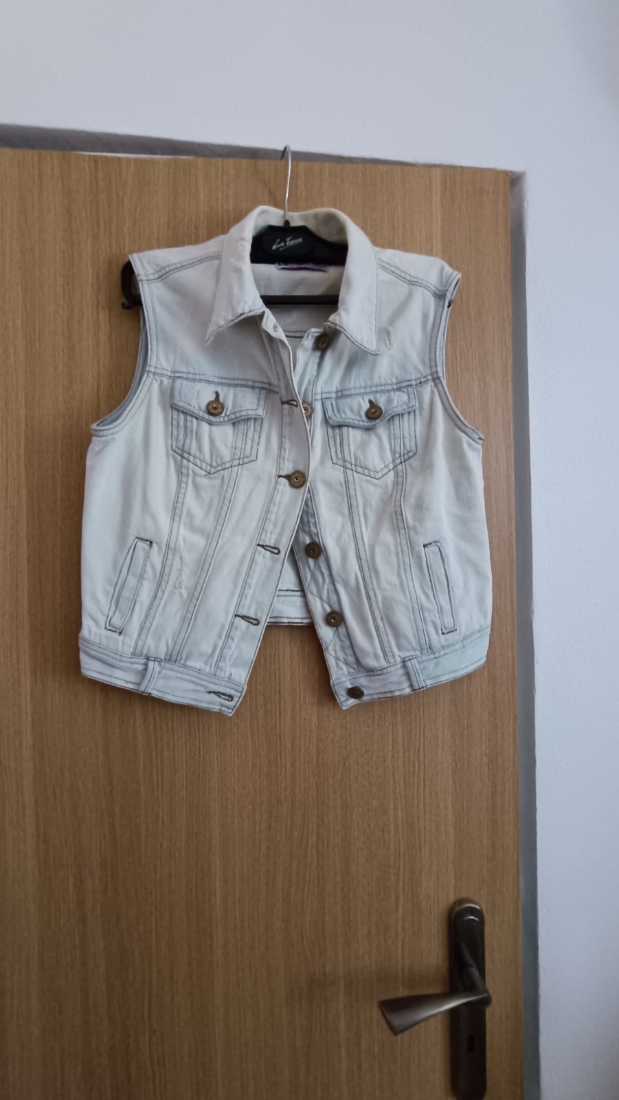 Predám peknú riflovú vestičku, asi raz oblečenú, bez poškodenia, veľkosť M, cena 3 eurá plus poštovné.