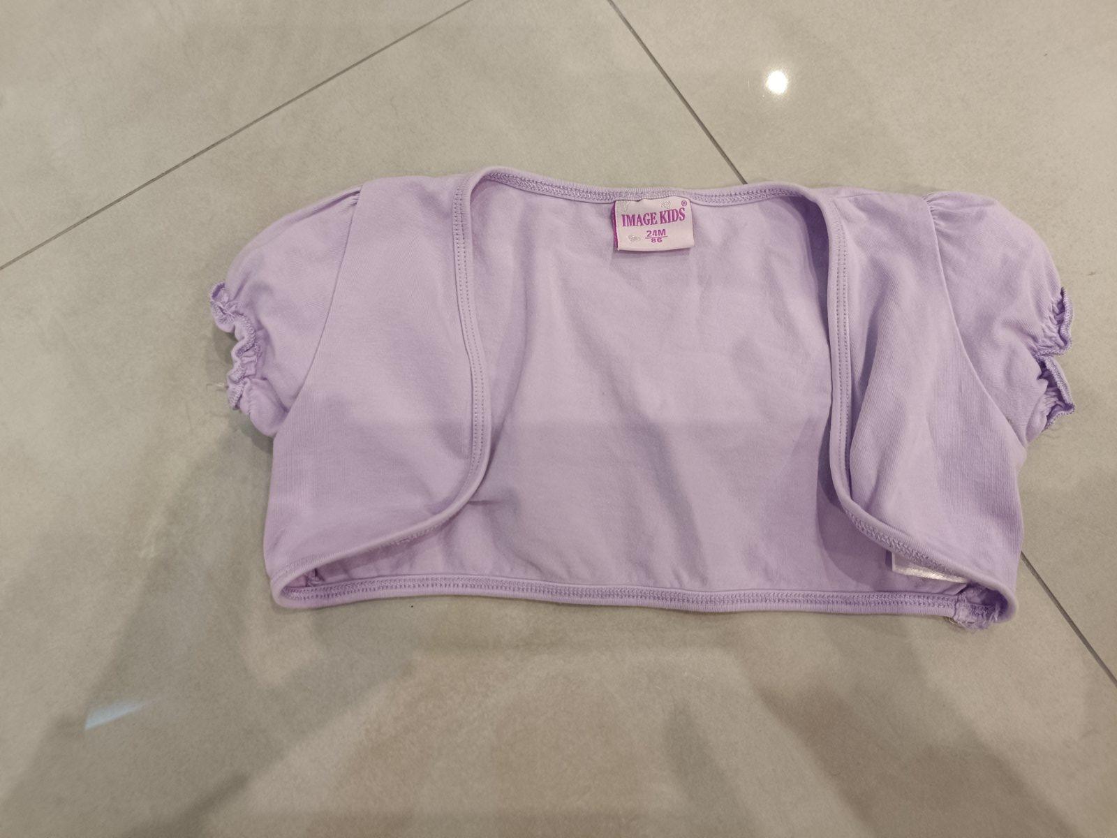 elegantný kožuštek fialkový s krátkym rukávkom, vhodný na svadbu na vrch šatiek. 12 - 18 mesiacov, cca 12,5kg.