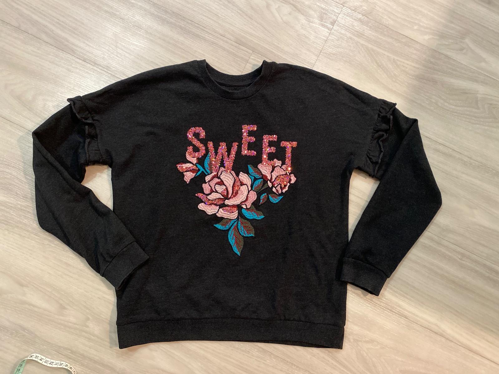 Predám crop top, dĺžka 43 cm, šírka 43 cm, rukáv od krku 59,5 cm. Bez poškodení. Používané málo. Cena 6€ + poštovné.