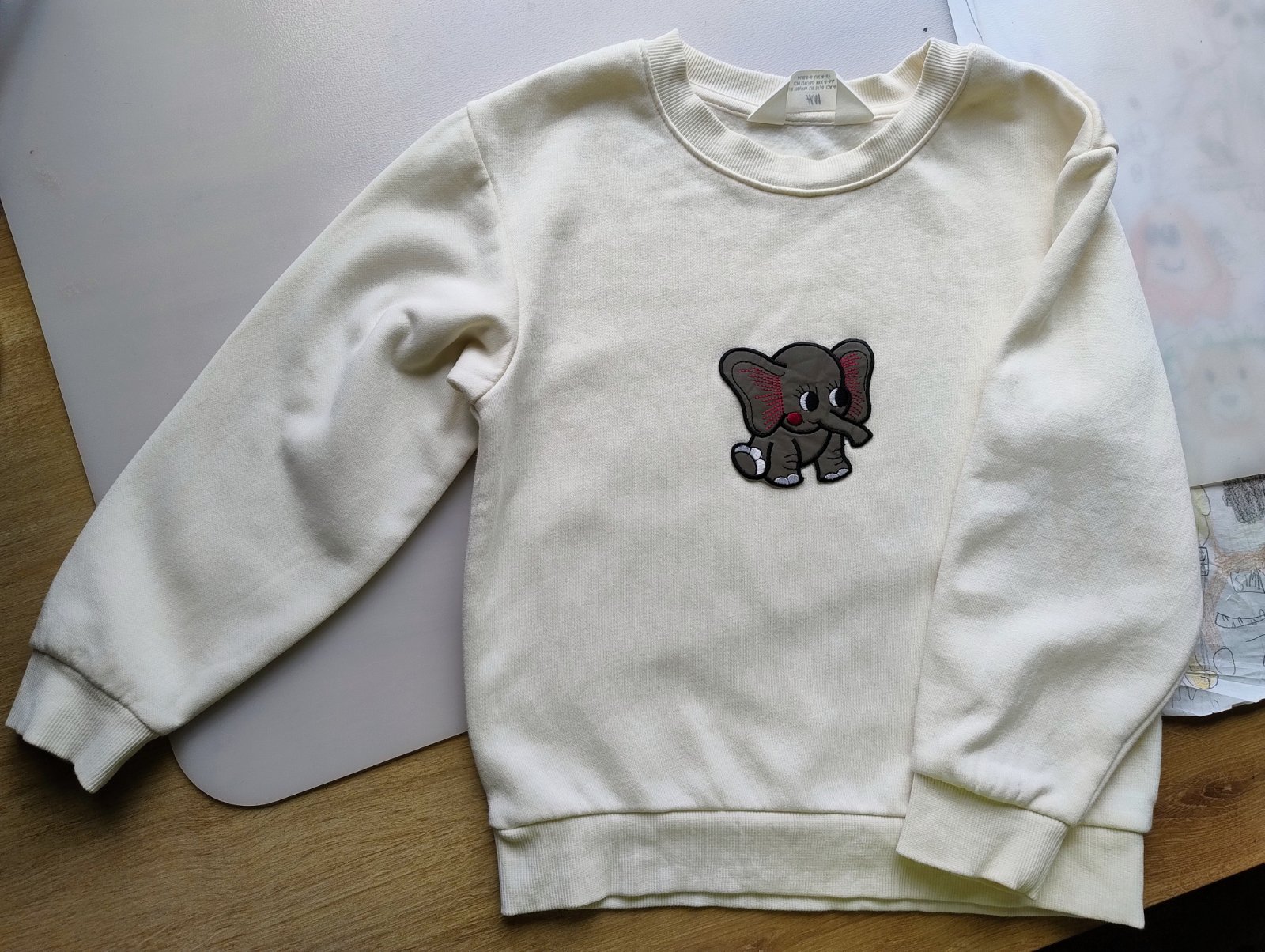 Pekný teplý svetrik, nosený stav, minizmolky na patentoch. Krémová, modra a červená farba, veľmi dobre na kombináciu. Dvojčíslo 110-116