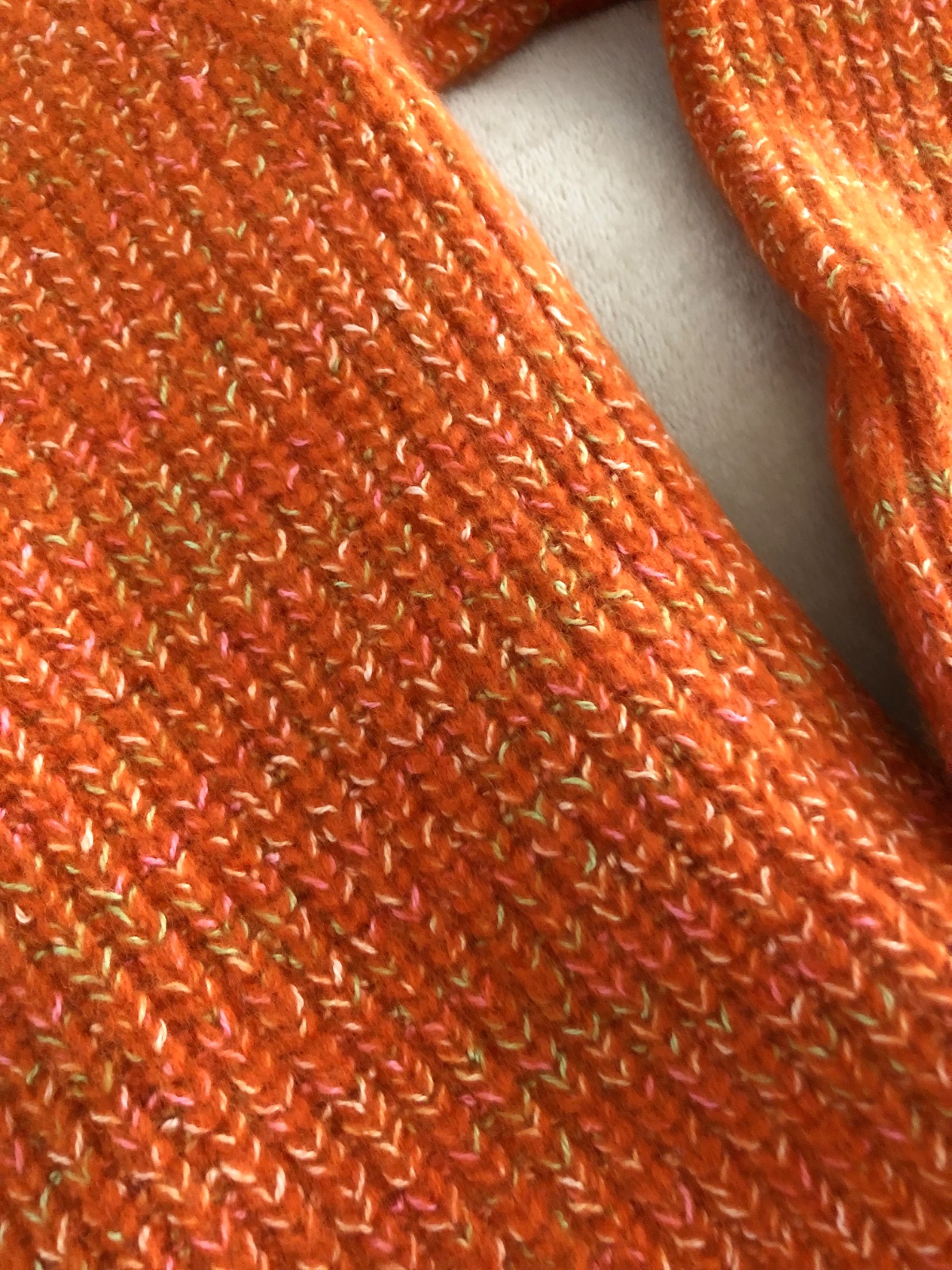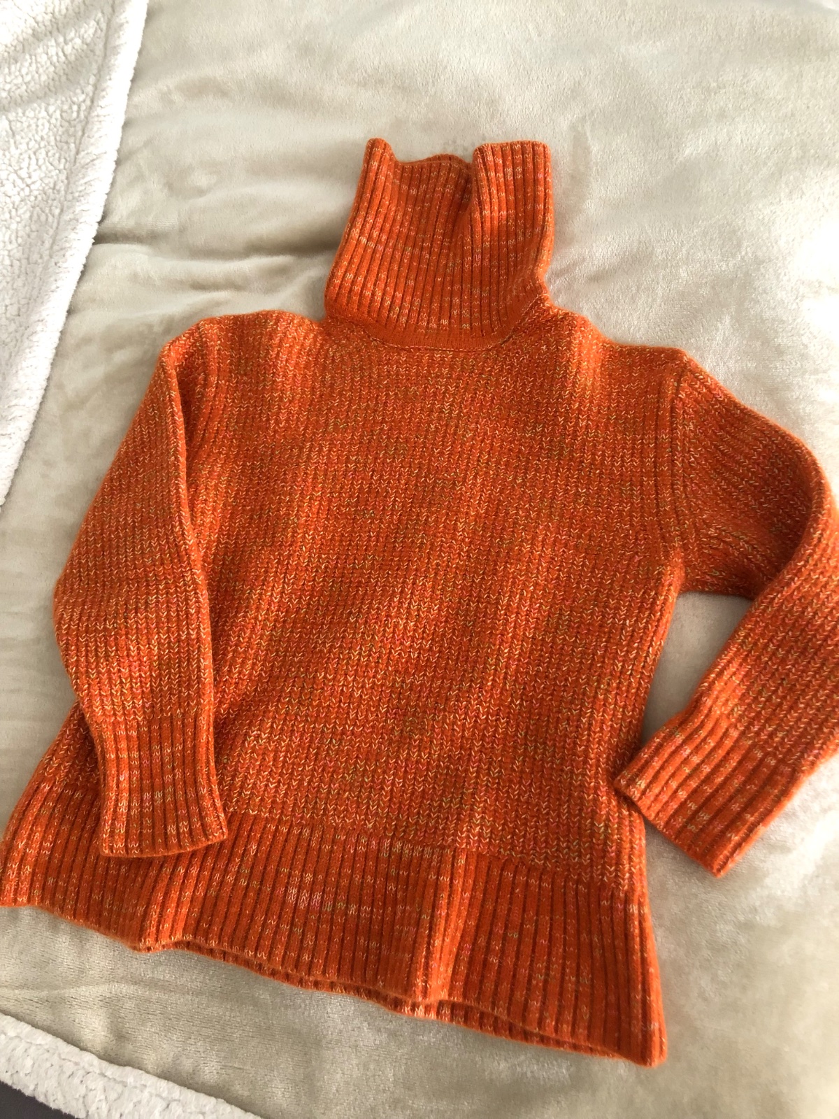 Farba je skor tehlovo oranzova. Noseny par krat, super stav. Material je jemny uplet prijemny na nosenie. Som rada že nakupujete z druhej ruky a šetríte tým životné prostredie ;))