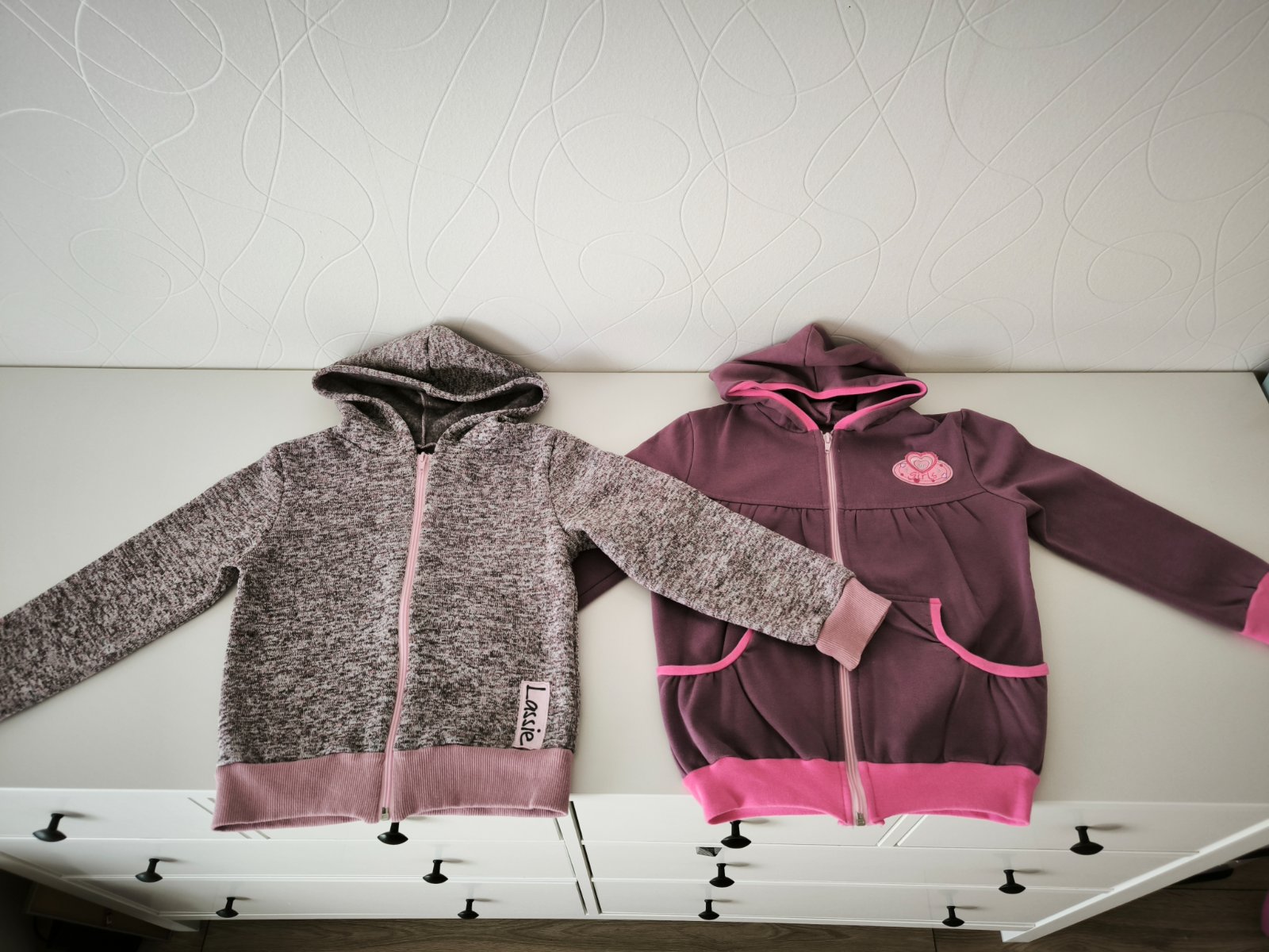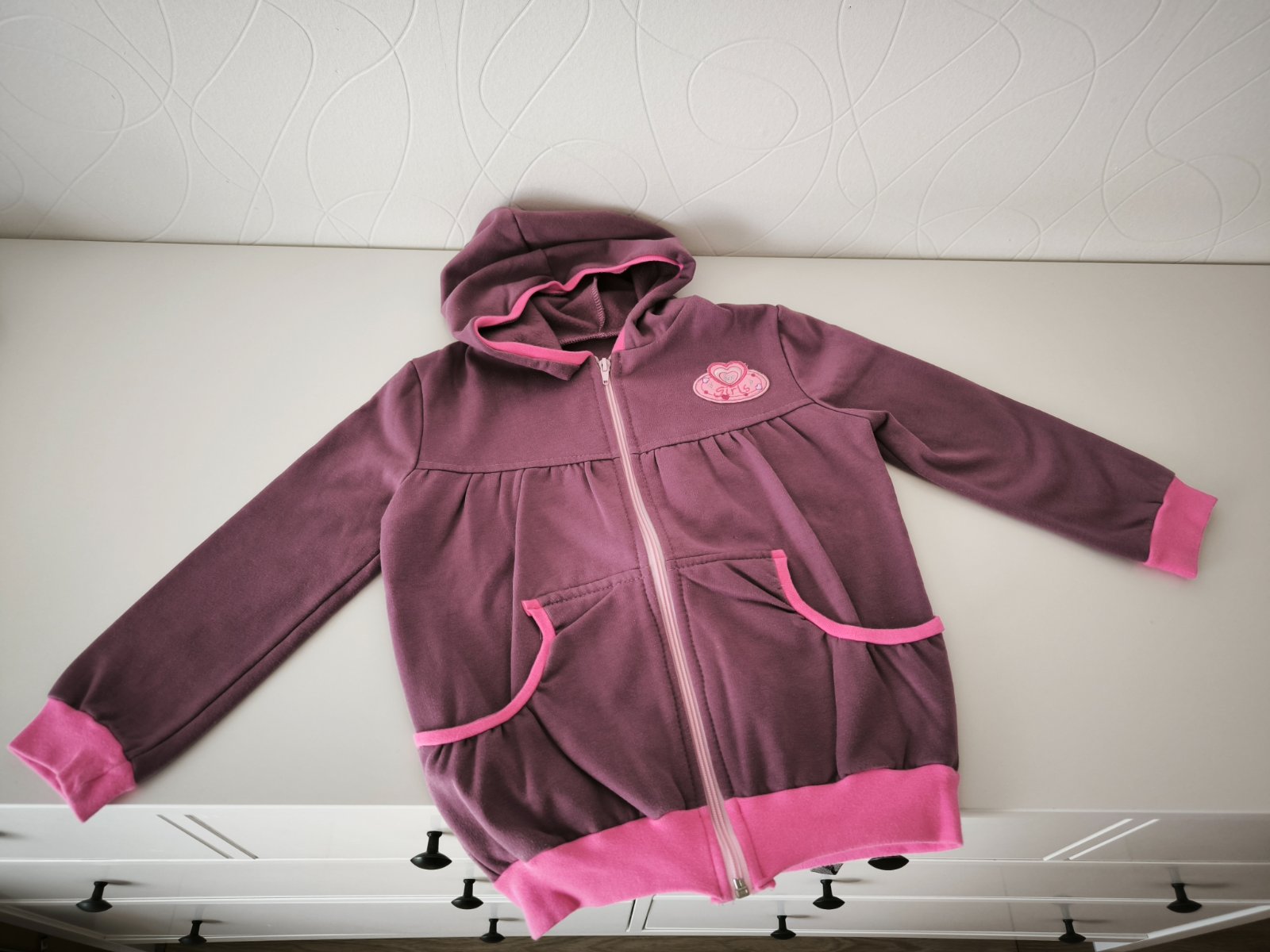Mikina v top stave oblečená 2-3 krát veľkosť 110/116. Značka Lassie. Fialovú mikinu tiež značka Lassie prikladám zdarma.