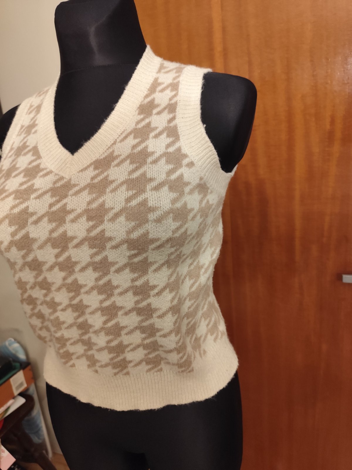 Predam velmi peknu vesticku. Uvedené je na 11-12rokov, obliekla ju v pohode dcera, ale oblecie ju aj zenske M. Na takej figurinke som ju fotila. Tym, ze je elasticka sa v pohode natiahne. Pre dievcatko bude volnejsia.