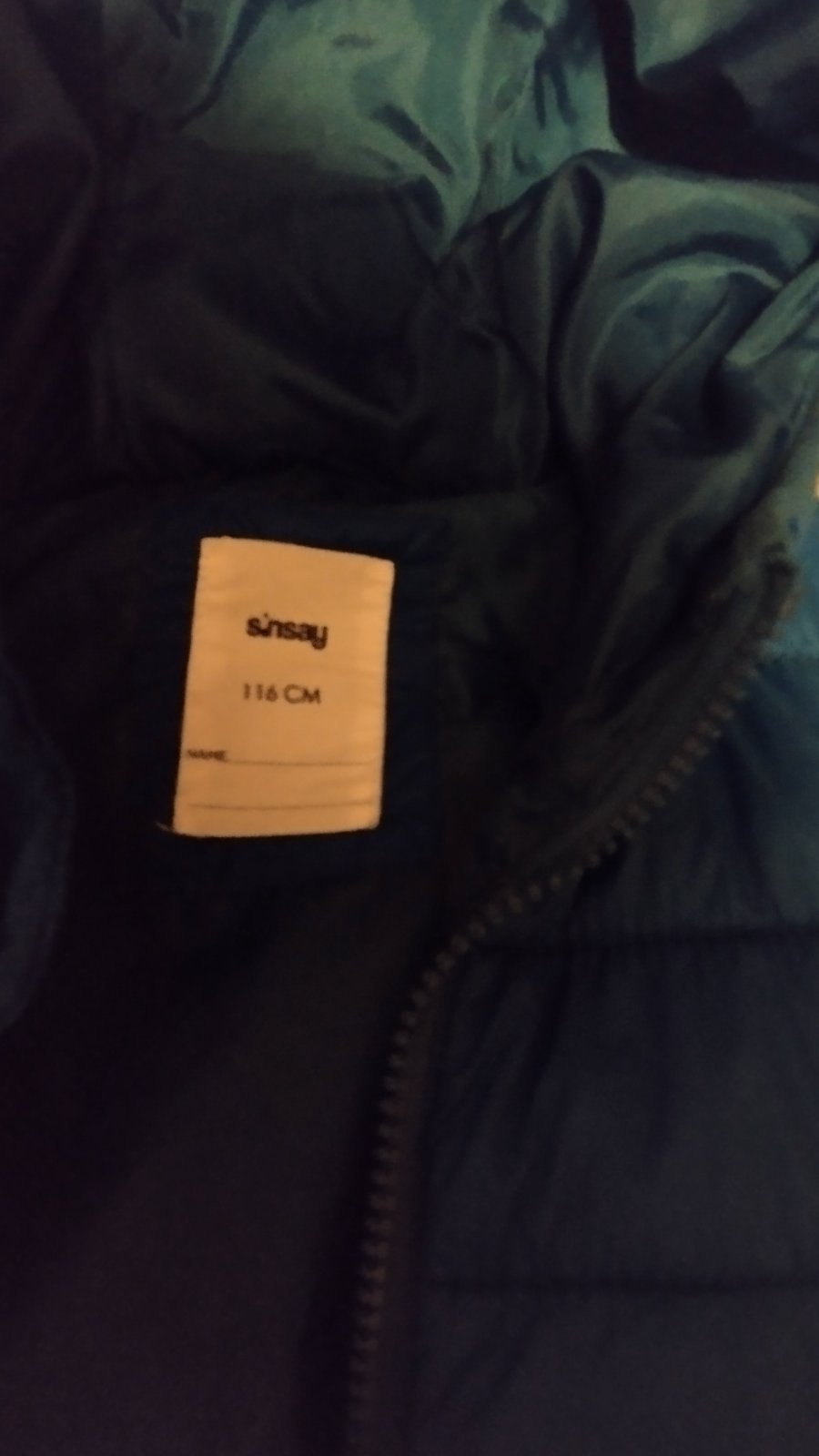 Táto tepláková vesta je ušitá zo 100% bavlnenej látky. Farba materiálu je tyrkysová. Kapucňa a klokanie vačky sú olemované tmavo modrou patentovou látkou. Máme zdvojené veľkosti 98-104, 110-116, 12...